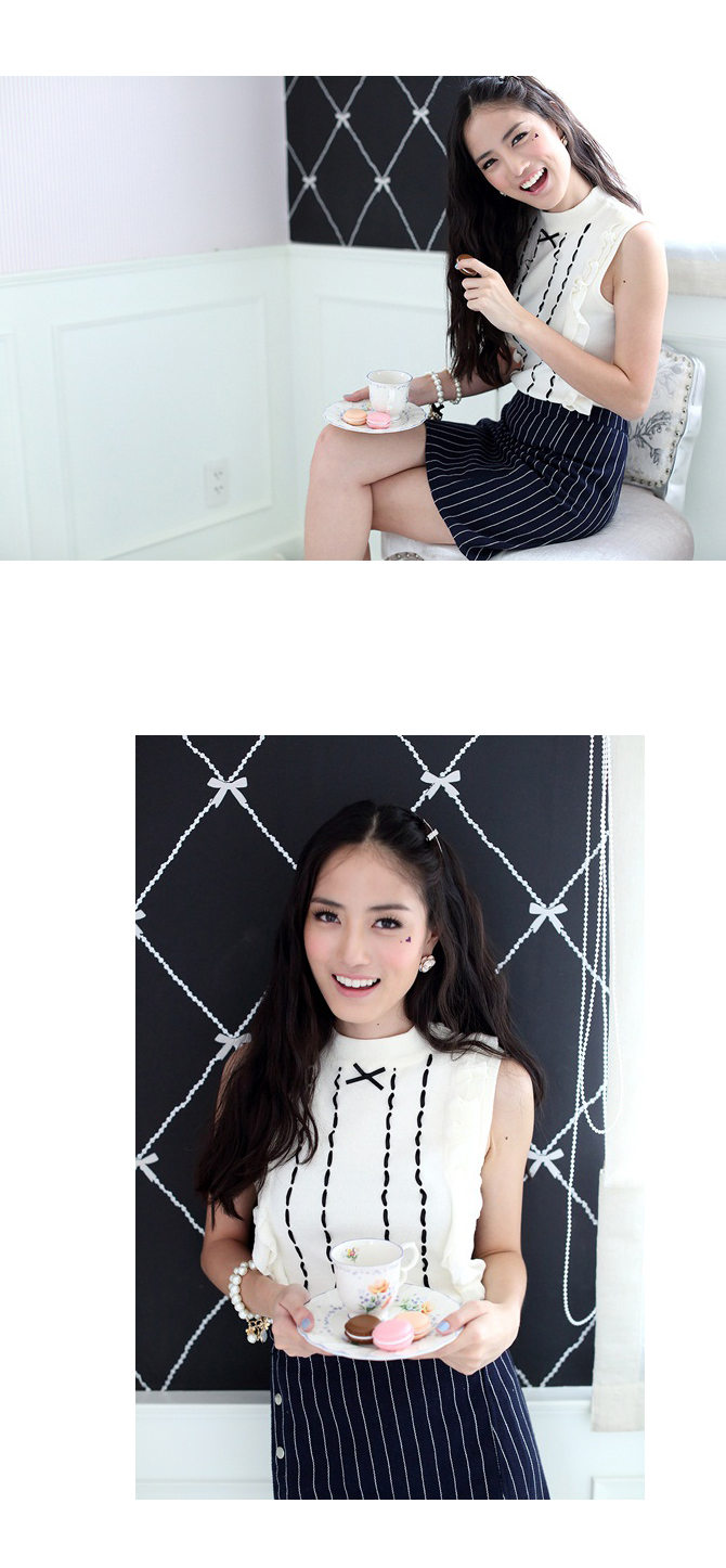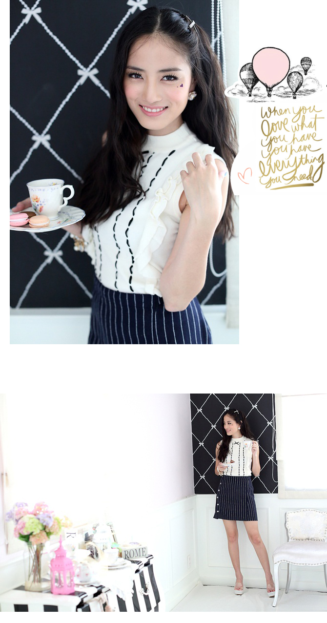 - เสื้อแขนกุด แบบเลดี้สไตล์ ตัวนี้ใช้ผ้าทอเนื้อนิตหนานุ่ม งานทอเกรดดี คุณภาพเกาหลีที่คอนเฟิร์มว่าเริ่ดแน่นอนค่ะ ตัวนี้มาเต็มทั้งแบบและดีเทลค่ะ ให้ลุกส์คุณหนูดูใส่ง่าย โทนสีเรียบแมทช์กับท่อนล่างได้มากมายหลายแบบ ถ้าชอบลุกส์คุณหนูดูเรียบร้อยแต่คลาสสิค แนะนำแมทช์กับรายการ ST409 รับประกัน สวยเป๊ะค่ะ