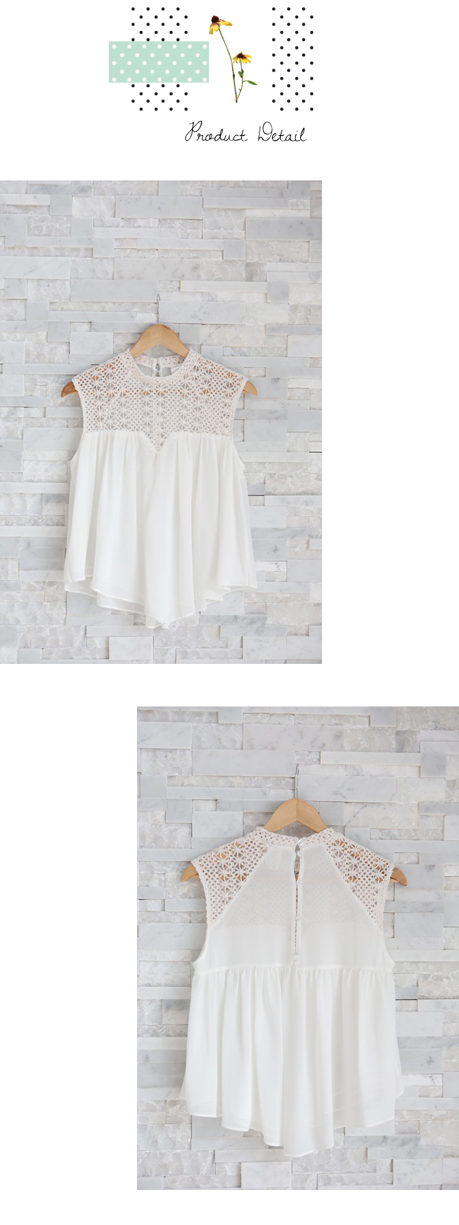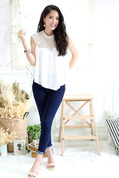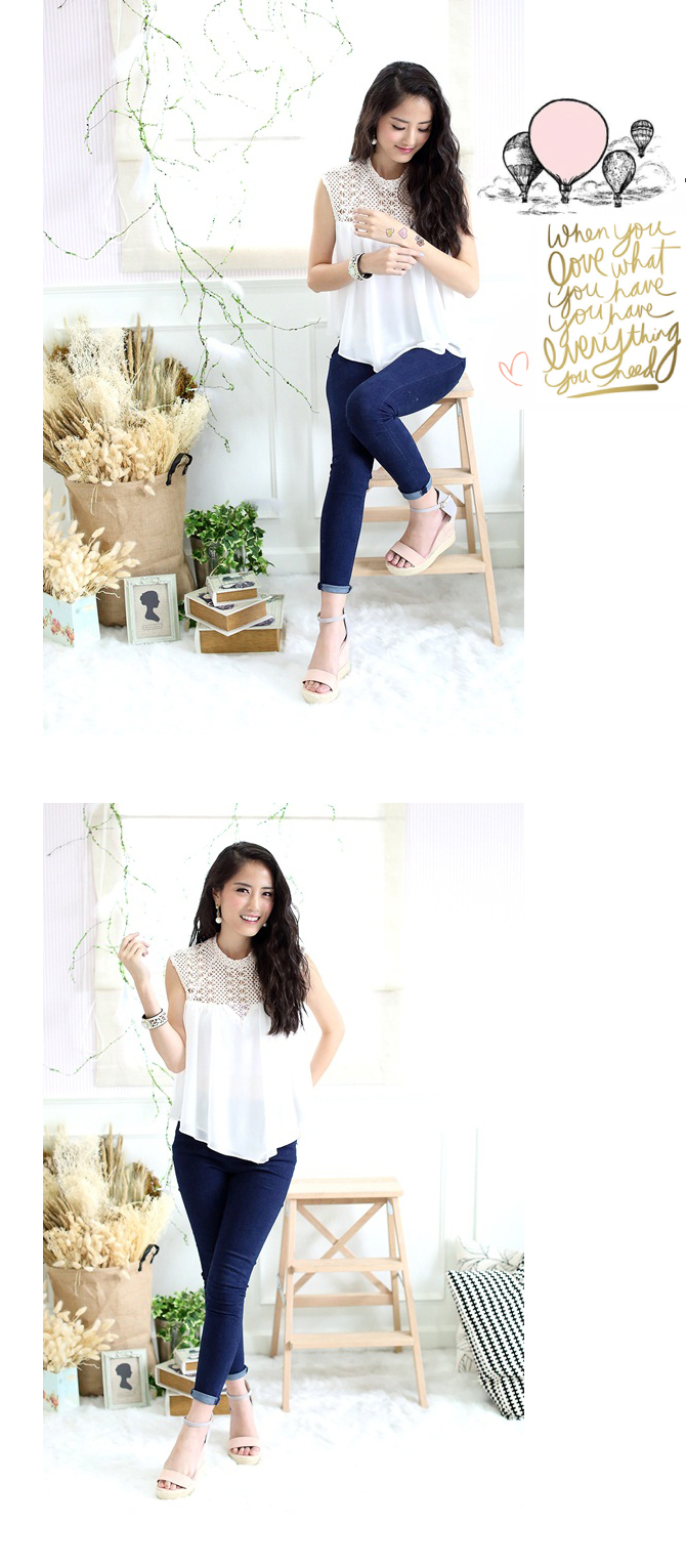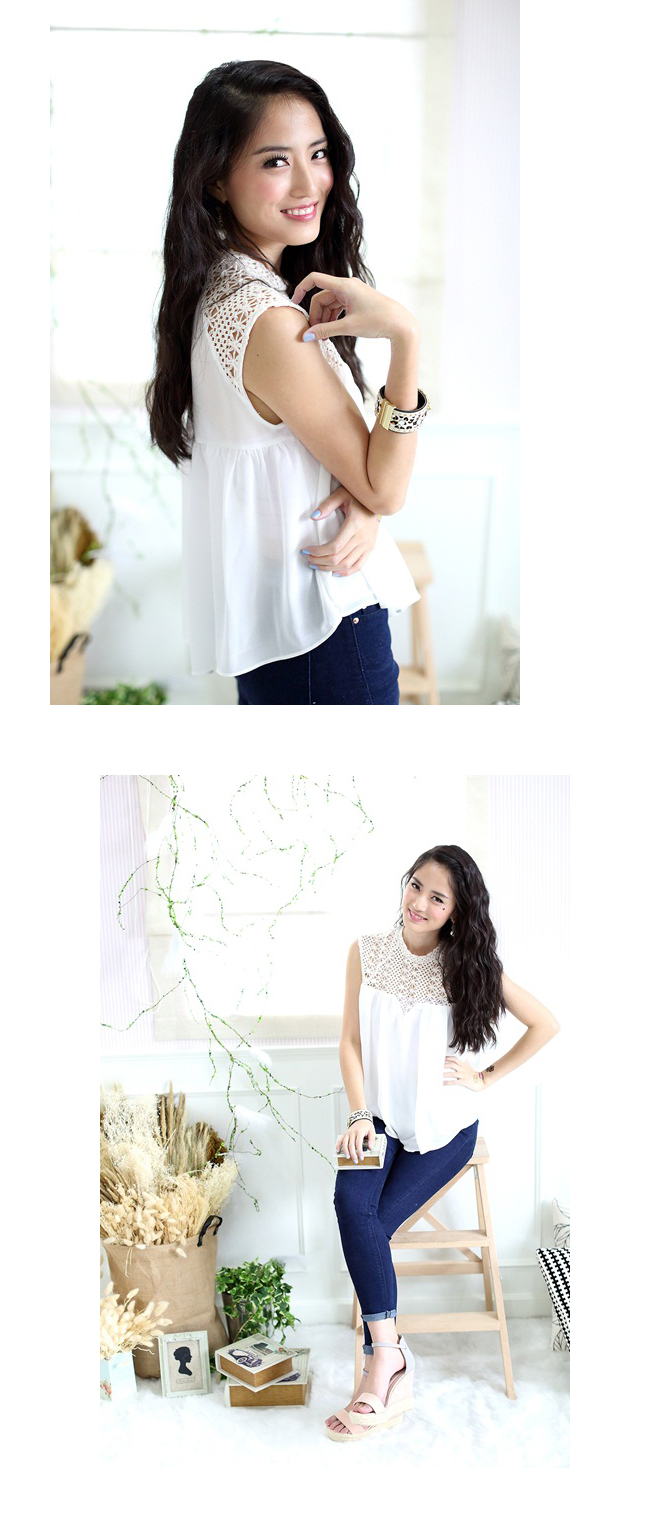 - เสื้อแขนกุดทรงสบาย ตัวนี้งานเกาหลีการันตีคุณภาพเนี๊ยบๆ กันเลยค่า เนื้อผ้าซิลค์กี้ผสมเกรดดี ใส่แล้วสบายตัว ลื่นเบาไม่มีร้อน ตัดต่อกับลูกไม้ลายสวยสุดๆ สาวๆ ที่ชอบ Daily Chic Style พลาดตัวนี้ไม่ได้นะคะ เพราะแมทช์กับท่อนล่างได้มากมายจริงๆ แค่ยีนส์สีเข้มๆ สักตัว ก็เด็ดแล้วค่า