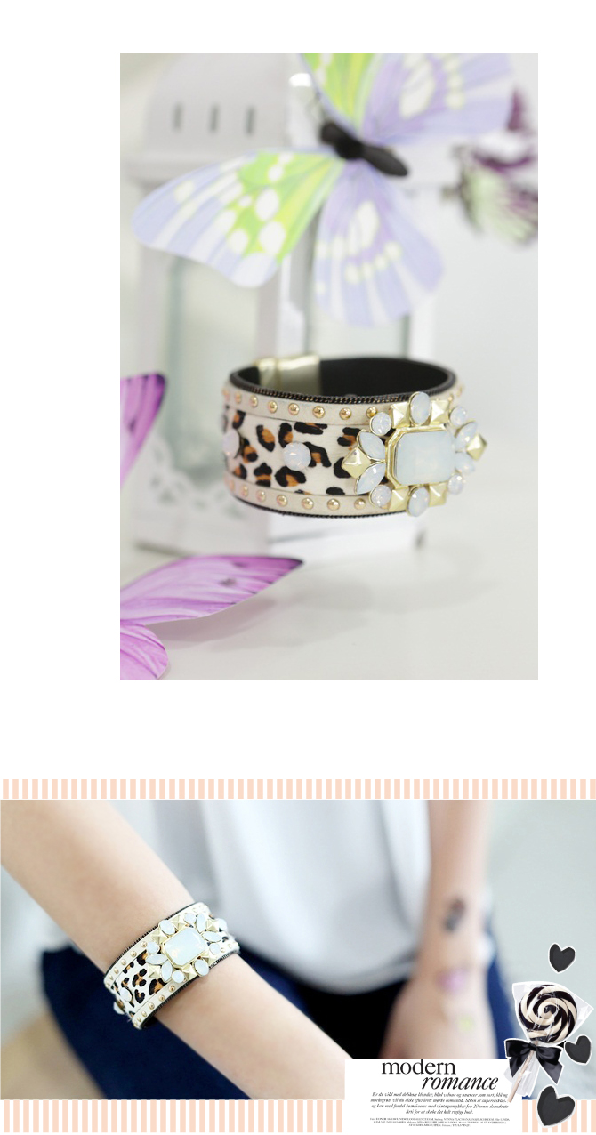 - กำไลแบบเก๋ ดีไซน์เป็นลายเสือสุดเปรี้ยว ประดับคริสตัลสวยหรูดูเพอร์เฟ็ค ใส่แล้วเซเลปมากๆ ค่ะ พูดเลย