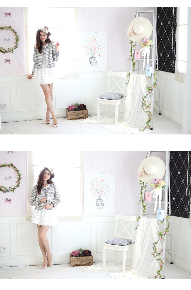 - เบลเซอร์ลายเก๋ เนื้อผ้าทอผสมมีลายในตัวเกรดดีจากเกาหลี ตัวนี้ขอบอกว่า คัตติ้งเริ่ดมากๆ ค่า งานดี แบบเป๊ะจริงๆ ใส่แล้วให้ลุกส์คลาซซี่ ดูดีแบบคลาสสิค เห็นเรียบๆ แบบนี้แต่ดีเทลแน่นมากนะคะ กระดุมยังเริ่ดเลยค่า สาวๆ จะใส่คลุมทับเดรสก็ให้ลุกส์หรู หรือจะใส่ทับชุดลำลองในวันหยุด ก็ดูคุณหนูหรูหราไม่เหมือนใคร