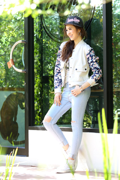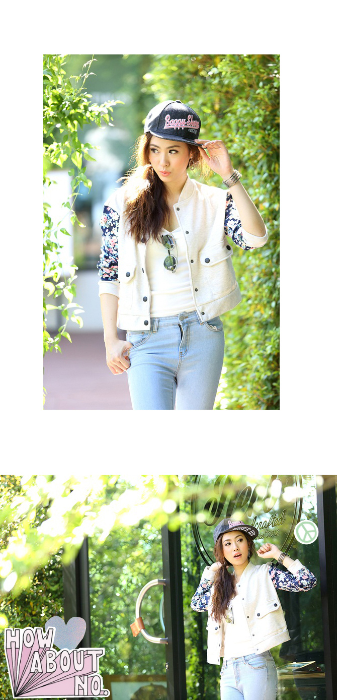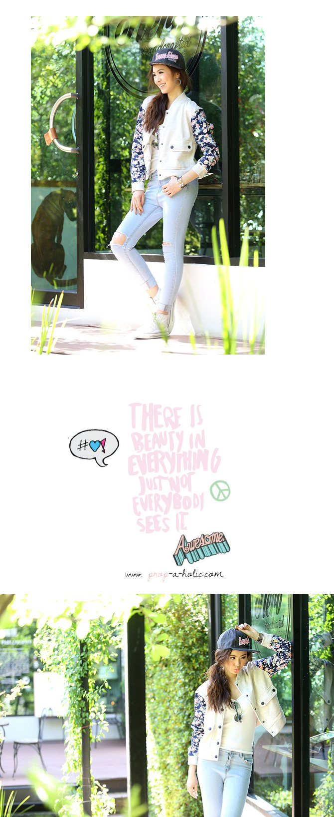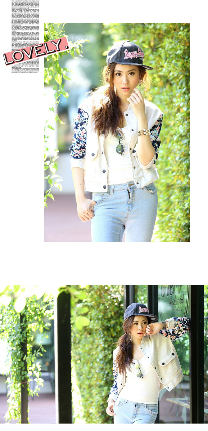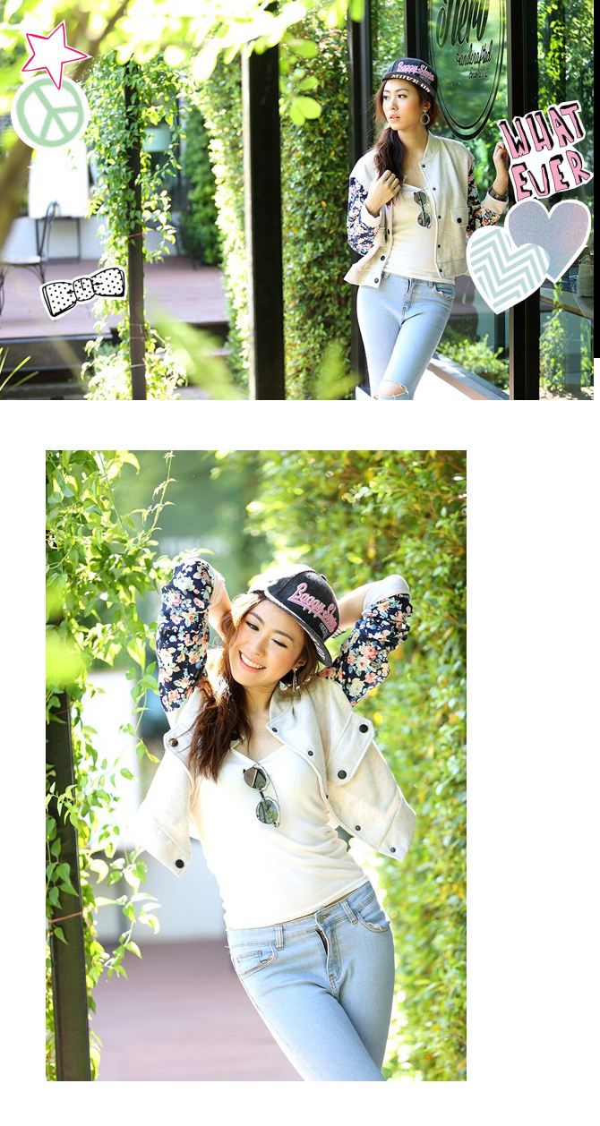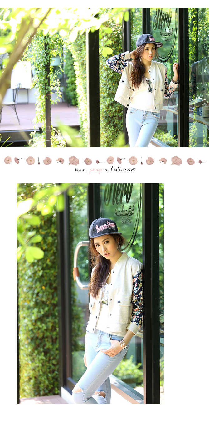 - แจ๊กเก็ตคอตตอนผสมเนื้อดี ตัดต่อช่วงแขนด้วยผ้าลายดอกไม้ เก๋ไก๋ไฮโซม๊ากมาก ตัวนี้เหมาะกับสาวๆ ทุกสไตล์กันเลยทีเดียว แถมเลือกแมทช์กับชุดได้มากมาย จะเดรสสายเดี่ยว จะเสื้อยืด กางเกงยีนส์ หรือ รายการ ST343 ก็แสนจะลงตัวไปหมดค่ะ
