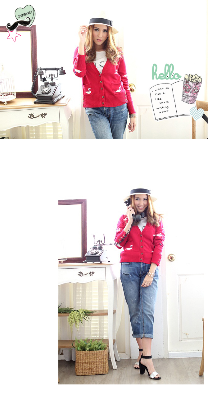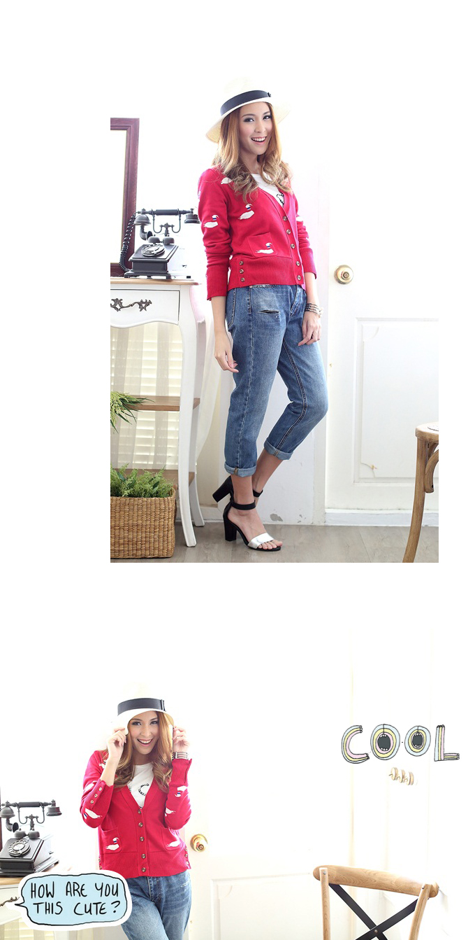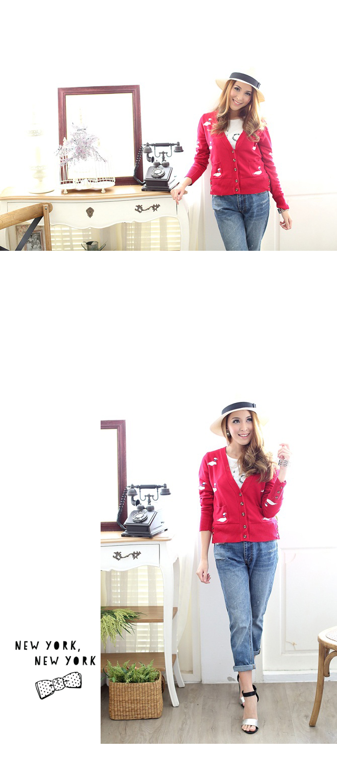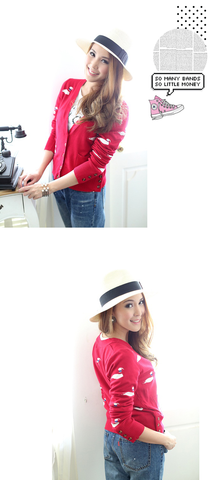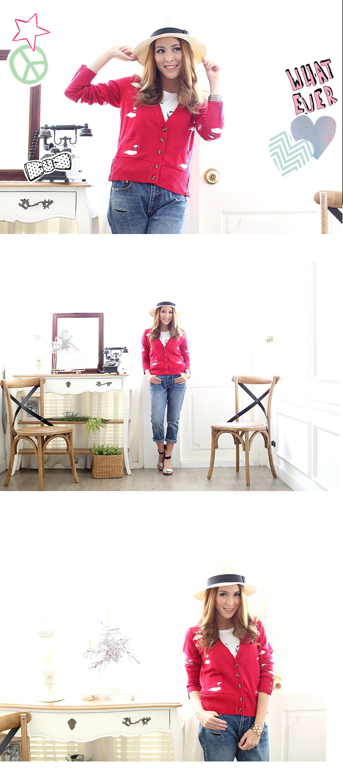 - คาดิแกนเนื้อหนานุ่ม ตัวนี้เน้นสีสดรับลมหนาวกันก่อนเลย อ๊ะๆ ไม่ได้มีดีแค่สีนะคะ ลายก็น่าร๊ากก เป็นน้องหงส์ขาวดุ๊กดิ๊กเต็มไปหมด น่ารักสุดๆ ไปเลยค่ะ สาวๆ จะเลือกใส่คู่รายการ St420 ก็ได้ลุกส์ลำลอง ดูน่ารักสบายๆ ดีนะคะ