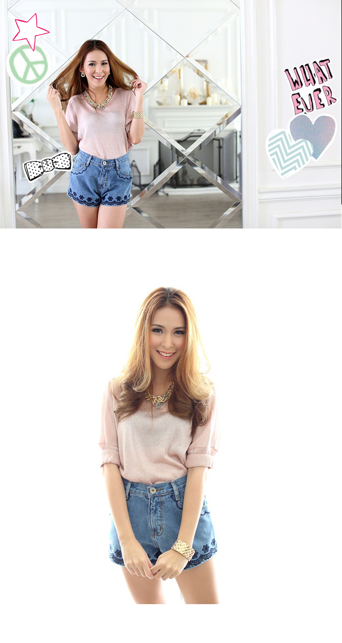 เสื้อผ้าคอตตอนผสม สีชมพูเนื้อกลิตเตอร์ ตัวนี้เอาใจสาวขี้ร้อนแต่แอบหนาวด้วยเนื้อผ้าบางเบาค่า ใส่กันลมสวยๆ ได้ดีเลยนะคะ แมทชกับท่อนล่าง ST426 สวยเปรี้ยว เซเลปเลยค่า