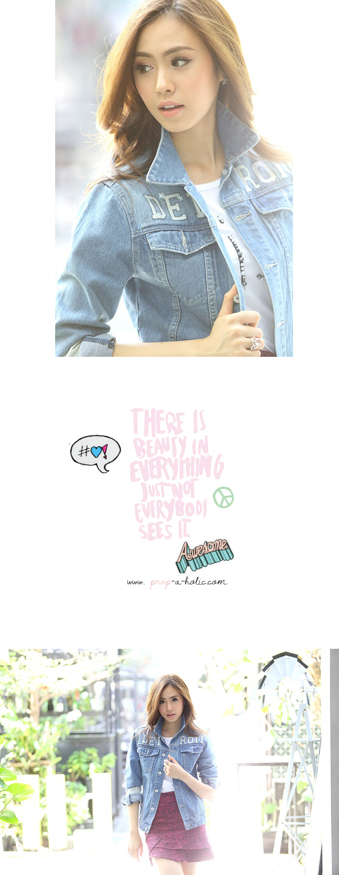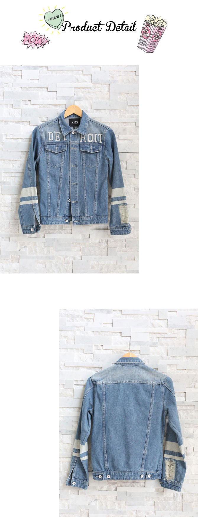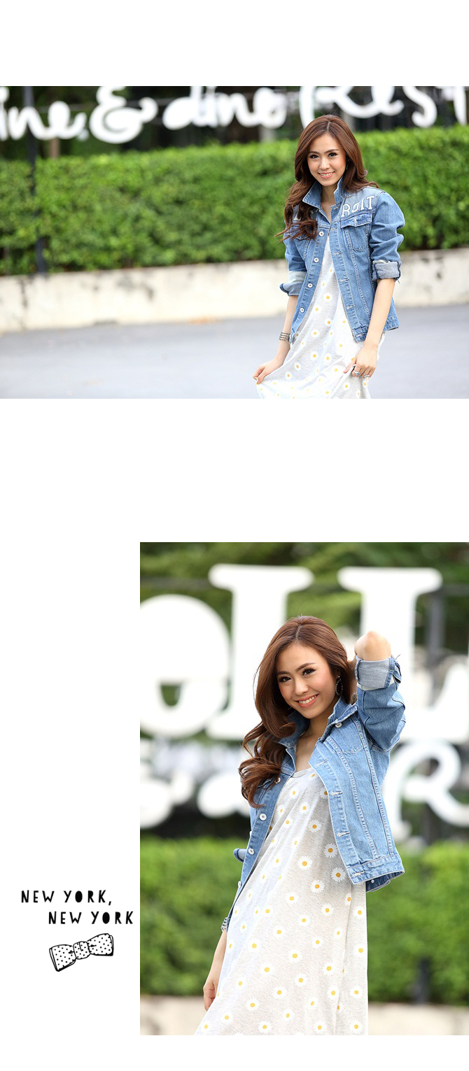 - แจ๊กเก็ตยีนส์ทรงสบาย เนื้อผ้ายีนส์หนากำลังดี ฟอกสีซีดสวยดูดีมีสไตล์ เพิ่มตัวอักษรเท่ห์ๆ ที่ช่วงตัว ดูดีมีราคามากมาย แถมแมทช์กับเดรส หรือ เสื้อยืดก็เก๋ไก๋มากมายเลยนะคะ แนะนำเพิ่มเติมสำหรับสาวๆ ที่ชอบลุกส์เซเลป ลองแมทช์กับ รายการ ST429/ DS703