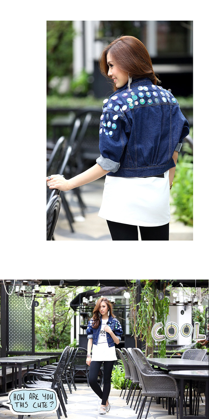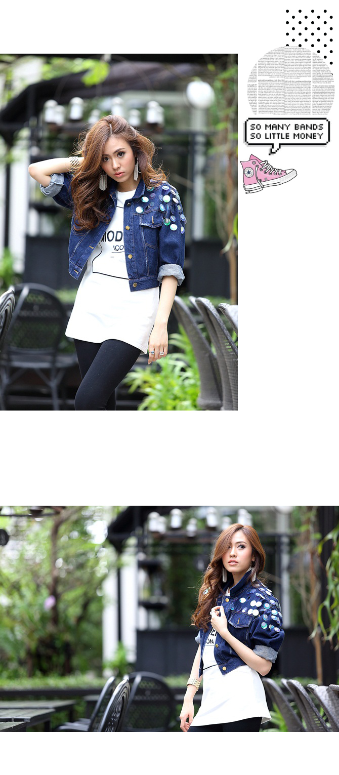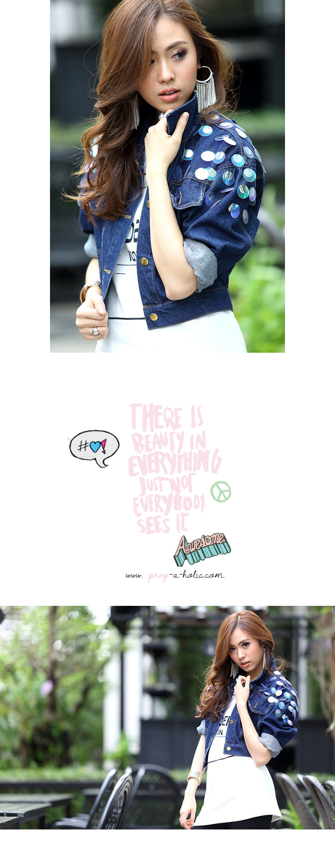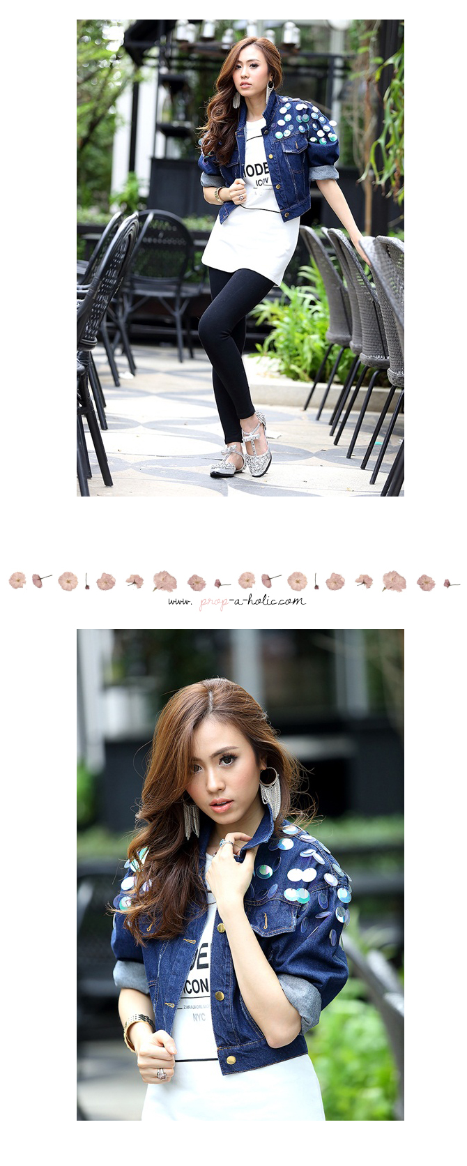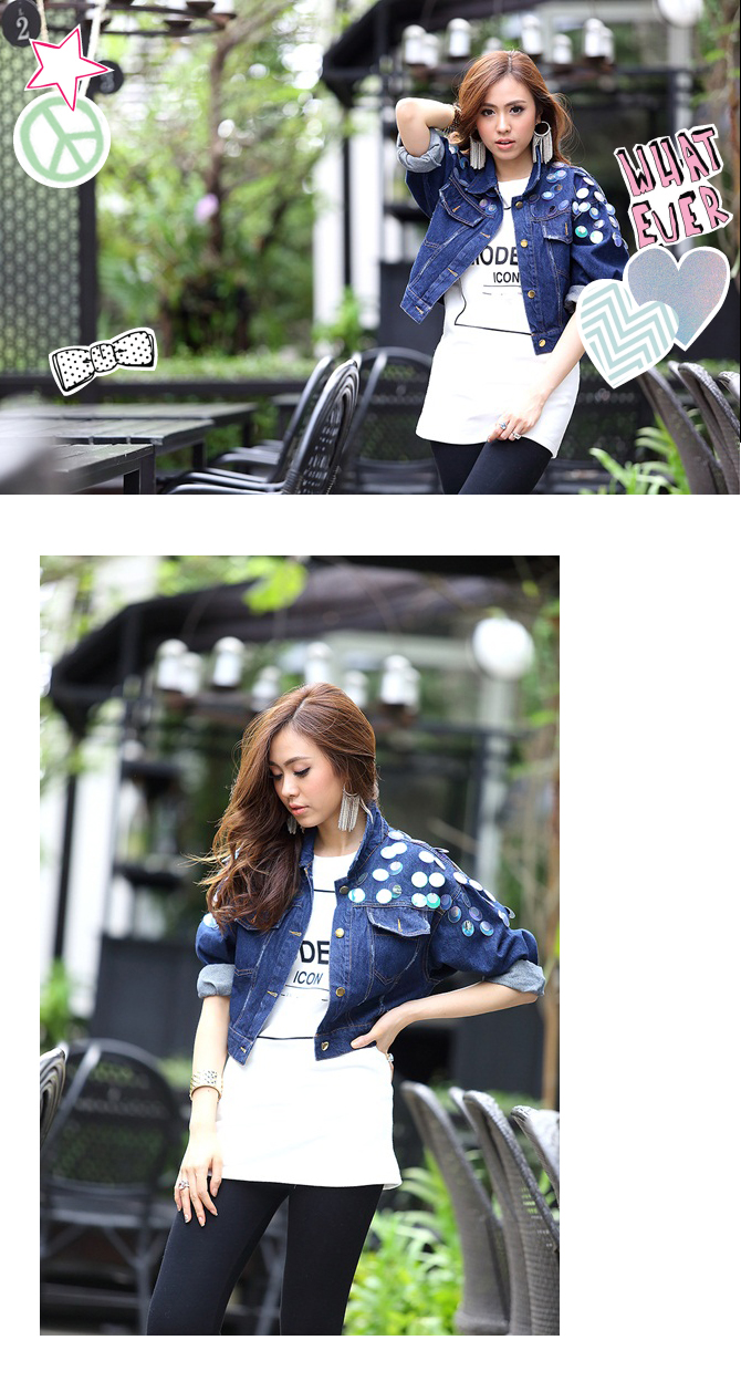 - แจ๊กเก็ตยีนส์สีสวย ตัวนี้เก๋ที่เลื่อมวิ้งวับจับตา ใส่แล้วเด่นเด้งไม่ซ้ำใครแน่นอน เค้าน์ดาวน์ที่จะถึงนี้ จัดเต็มไว้สวยสู้ลมหนาว และ แฟลชกล้องเริ่ดๆ ก็แจ่มนะคะ เนื้อผ้ายีนส์ฟอกหนากำลังดี สีสวยเข้มแมทช์กับรายการอื่นได้มากมาย หรือ จะแมทช์คู่รายการ BL2028 ก็เข้ากันสุดๆ ค่า