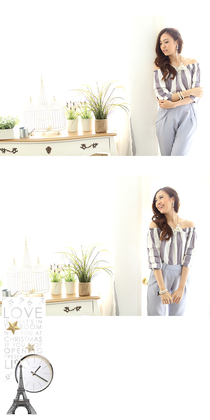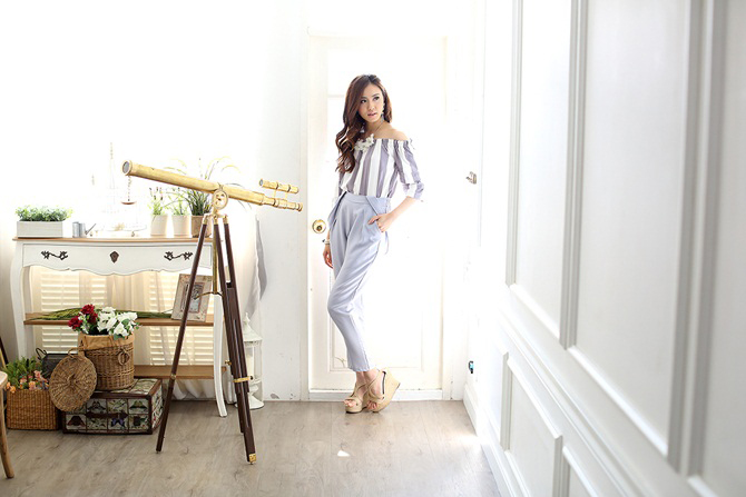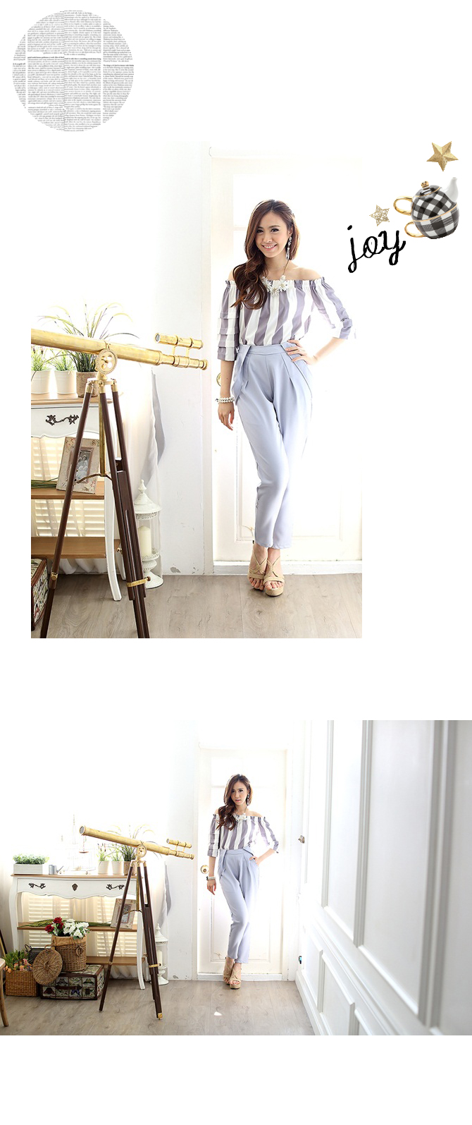 - เสื้อเปิดไหล่ ลายทาง สวยหวานซ่อนเปรี้ยว ตัวนี้ใช้ผ้าเนื้อดีลายทางตัดต่อยางยืดช่วงบ่าสบายๆ ใส่เปิดไหล่แล้วเริ่ดสุดๆ หรือจะยกไหล่ขึ้นเล็กน้อยก็สามารถค่ะ เอนกประสงค์เลอค่ามากๆ จะให้เริ่ด ต้องแมทช์กับชุดหมีรายการ DS709 หรู เรียบ แต่ชวนฝันมากๆ นะคะ ขอบอก