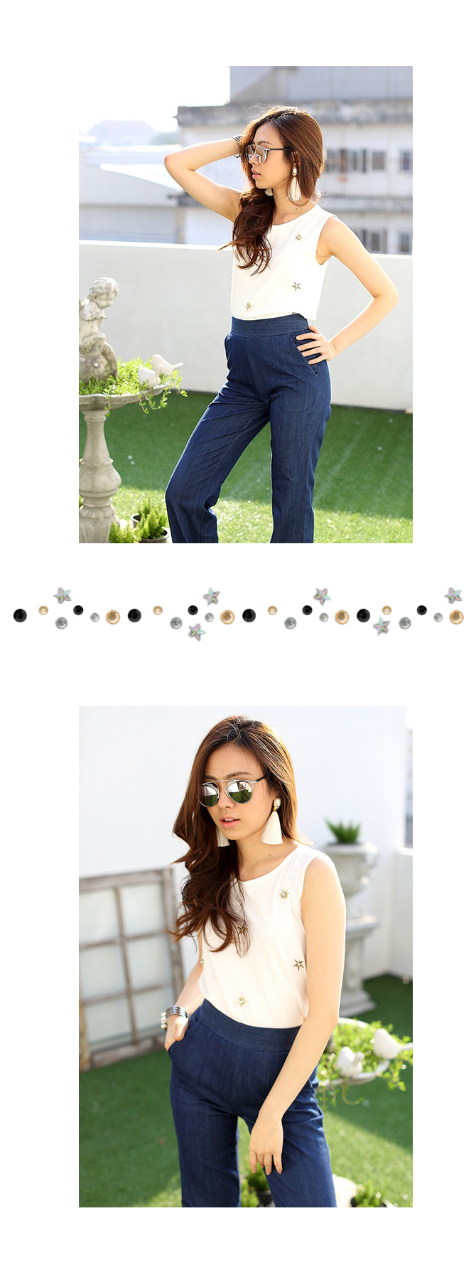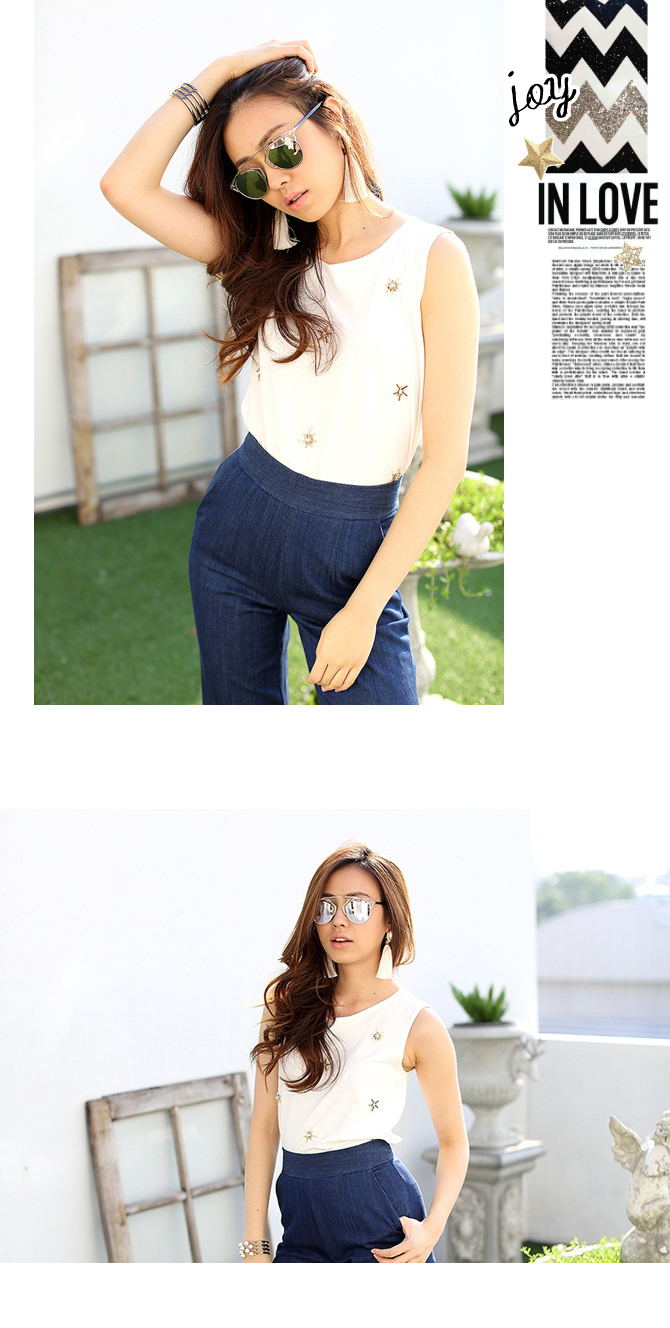 - เสื้อกล้าม ผ้าคอตตอนยืดเนื้อนิ่ม ปักคริสตัลวิ้งๆ ด้านหน้า เรียบหรูแต่มีสไตล์ สาวๆ สตรีทชิคควรมีไว้ติดตู้นะคะ แมทช์กับกางเกงรายการ ST444 แล้วยิ่งอัพลุกส์สุดซิ่งเลยจ้า ขอบอก