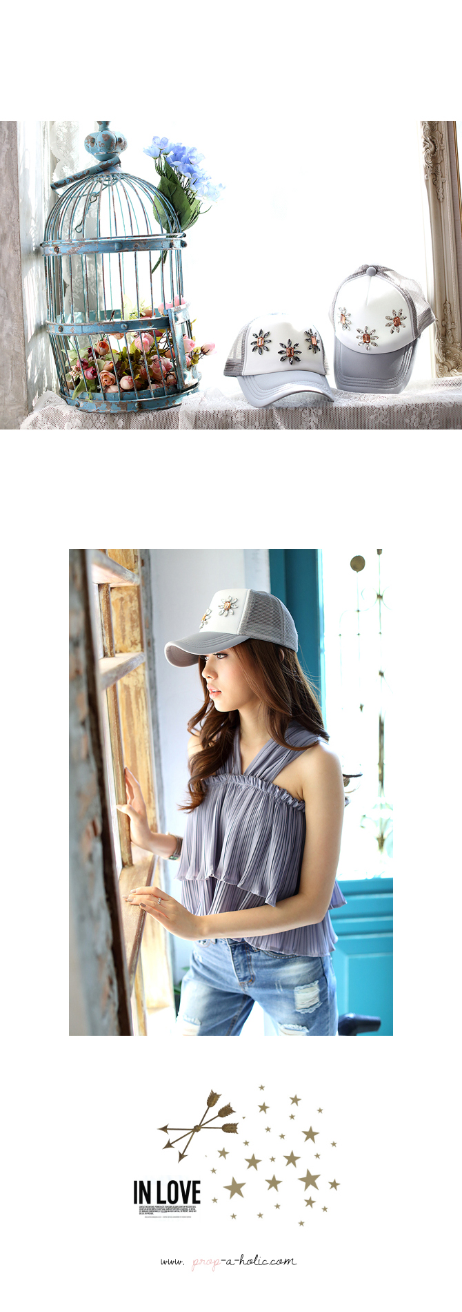 หมวกแก๊ป ดีเทลแน่น มาพร้อมคริสตัลสีวิ้ง โดดเด่นสะดุดตา ใส่สบายด้วยตัวปรับระดับด้านหลัง เก๋ไก๋ขนาดนี้ แฟชั่นนิสต้าต้องมีติดไว้นะคะ