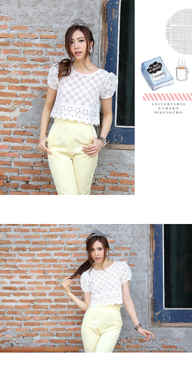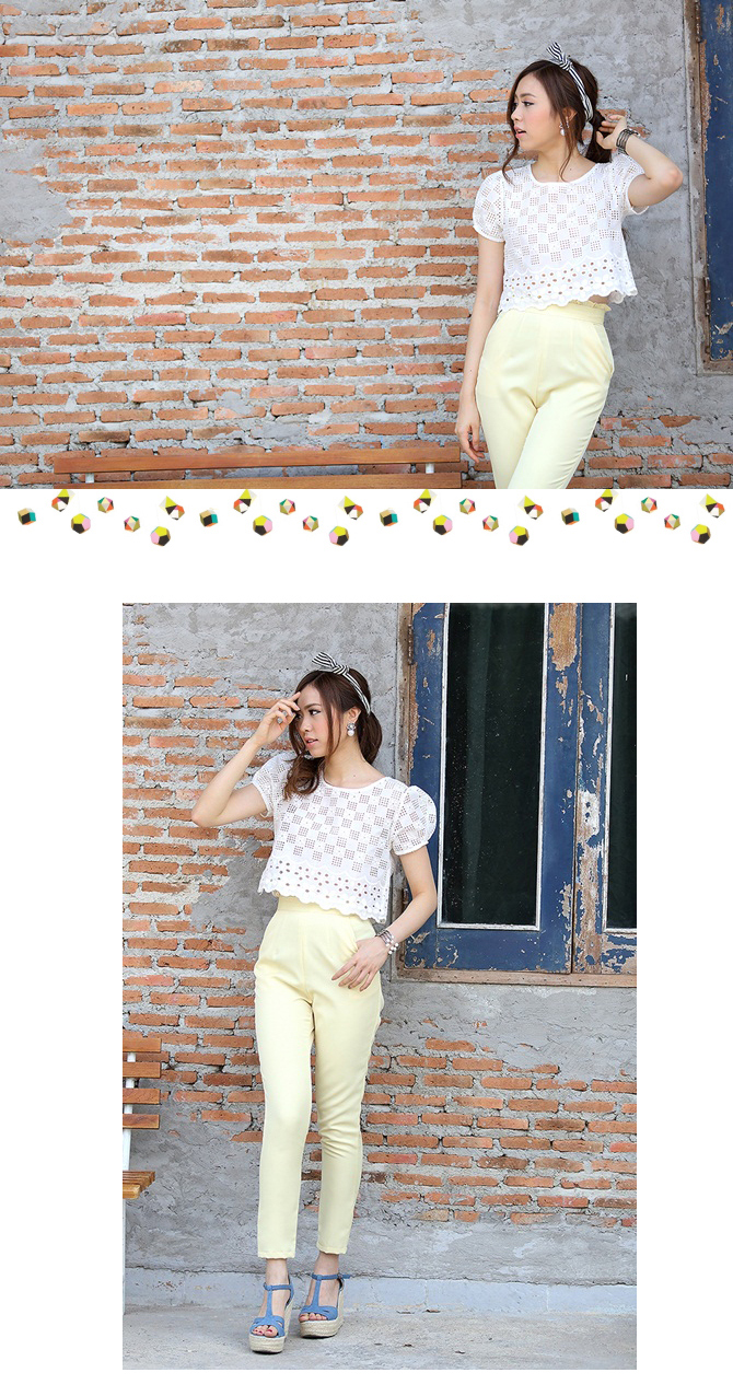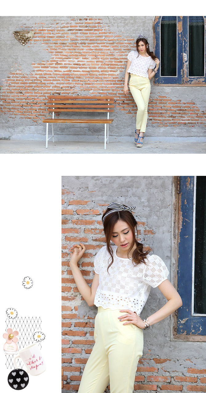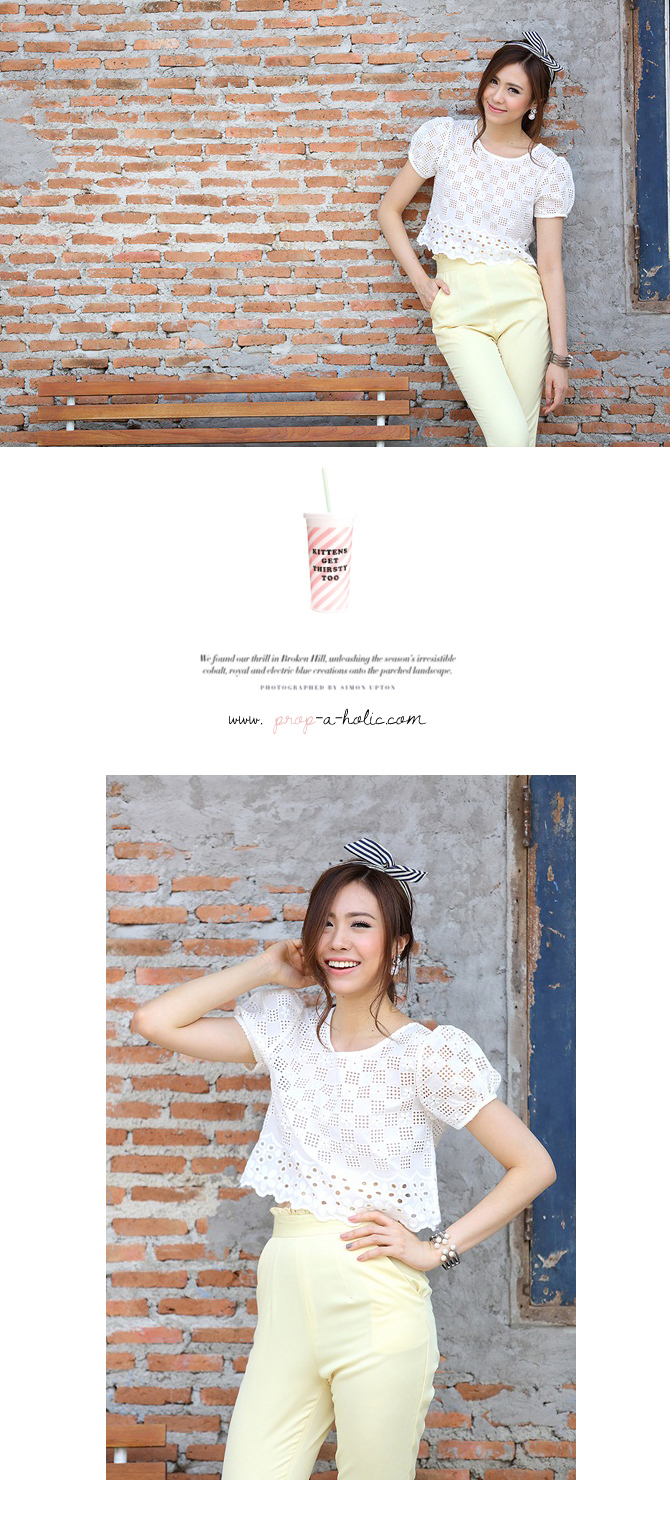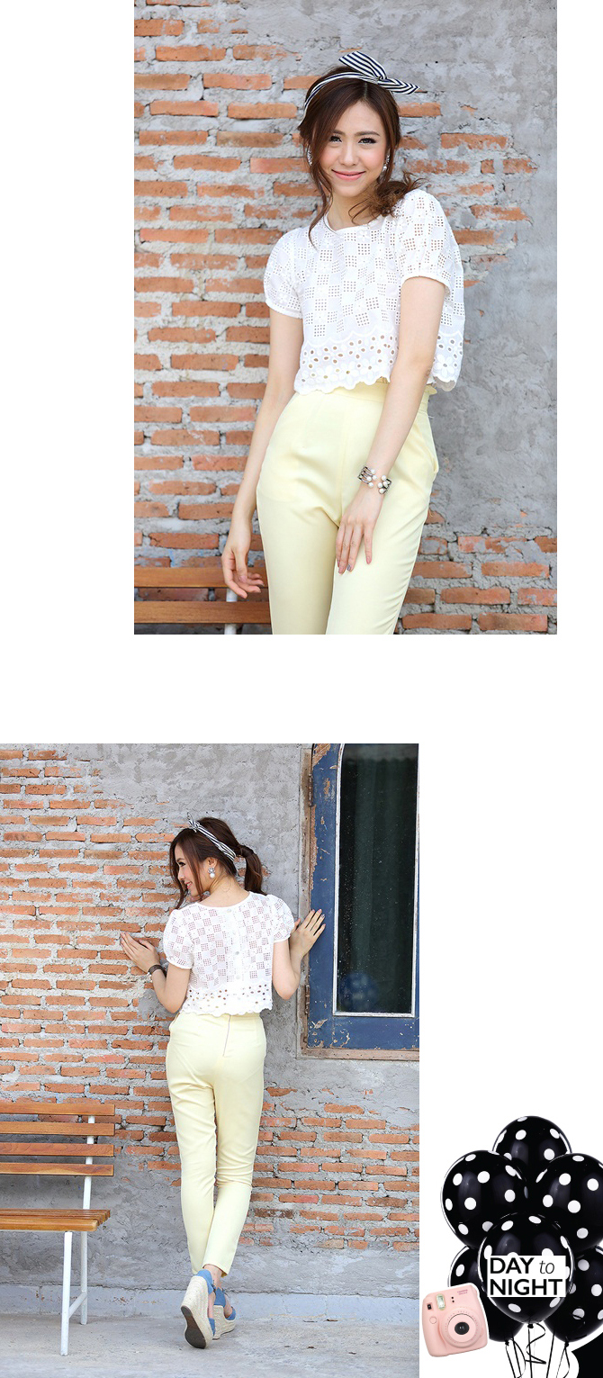 เสื้อลูกไม้ ดีไซน์น่ารัก กลับมาตามคำเรียกร้องค่า ตัวนี้น่าร๊ากมากกกก ทรงคร๊อปนิดๆ ลายผ้าฉลุสวย ให้ลุกส์หวานซ่อนเปรี้ยวได้ใจ แมทช์กับกางเกงเอวสูง 3-ST455 ก็สวยหวานดูดี หรือจะแมทช์คู่เอี๊ยมหมี DS713 ก็เปรี้ยวหวานลงตัวจ้า
