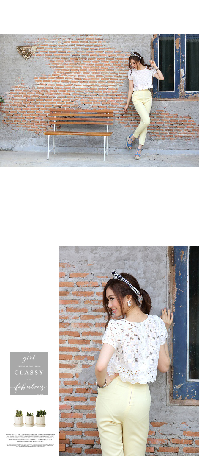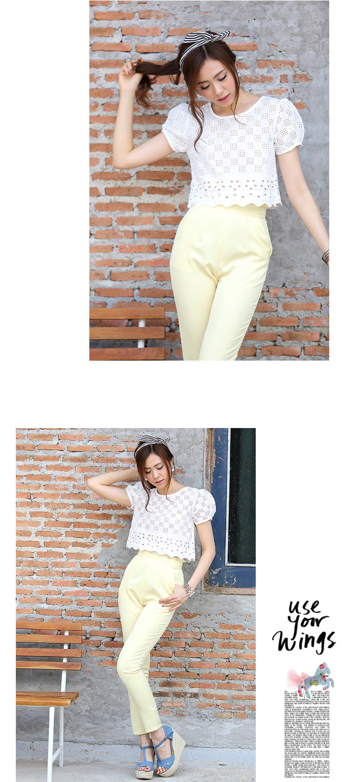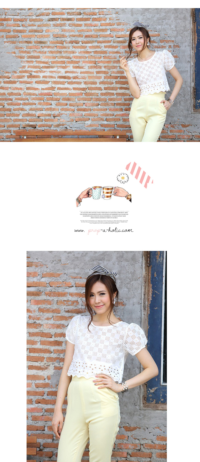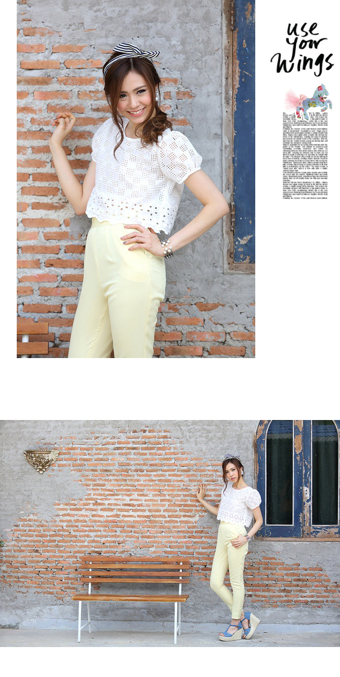 เสื้อลูกไม้ ดีไซน์น่ารัก กลับมาตามคำเรียกร้องค่า ตัวนี้น่าร๊ากมากกกก ทรงคร๊อปนิดๆ ลายผ้าฉลุสวย ให้ลุกส์หวานซ่อนเปรี้ยวได้ใจ แมทช์กับกางเกงเอวสูง 3-ST455 ก็สวยหวานดูดี หรือจะแมทช์คู่เอี๊ยมหมี DS713 ก็เปรี้ยวหวานลงตัวจ้า