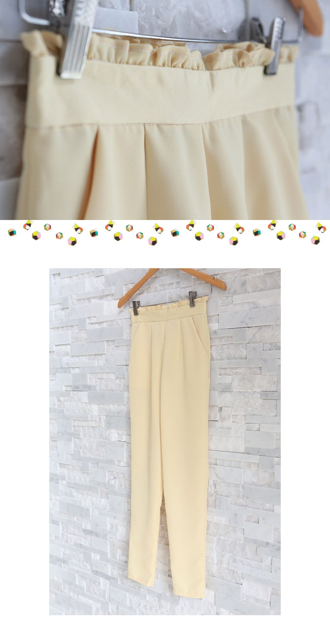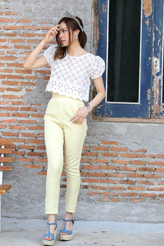 - กางเกงสีเหลือง สวยหวานสบายตา เอวสูงกำลังงาม ทรงสวยเป๊ะ สีหวานแบบนี้เหมาะที่จะมีไว้ในครอบครองมากมาย เพราะนอกจากขับผิวแล้วยังใส่กับเสื้อได้หลากสีเลยค่ะ ช่วงเอวทำเก๋ด้วยระบายเล็กๆ โดดเด่น ใส่กับเสื้อคร๊อปแล้วน่ารักมาก แนะนำสาวๆ แมทช์กับรายการ BL2096 จ้า
