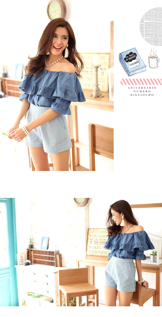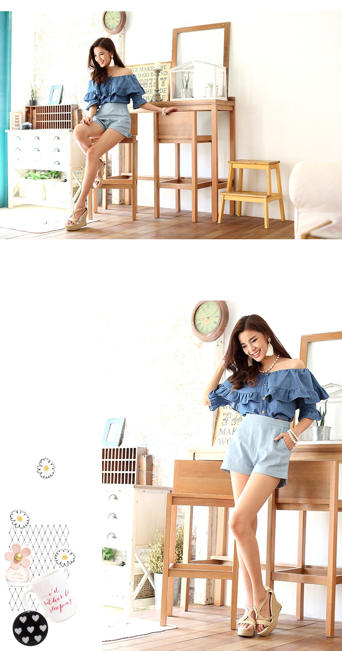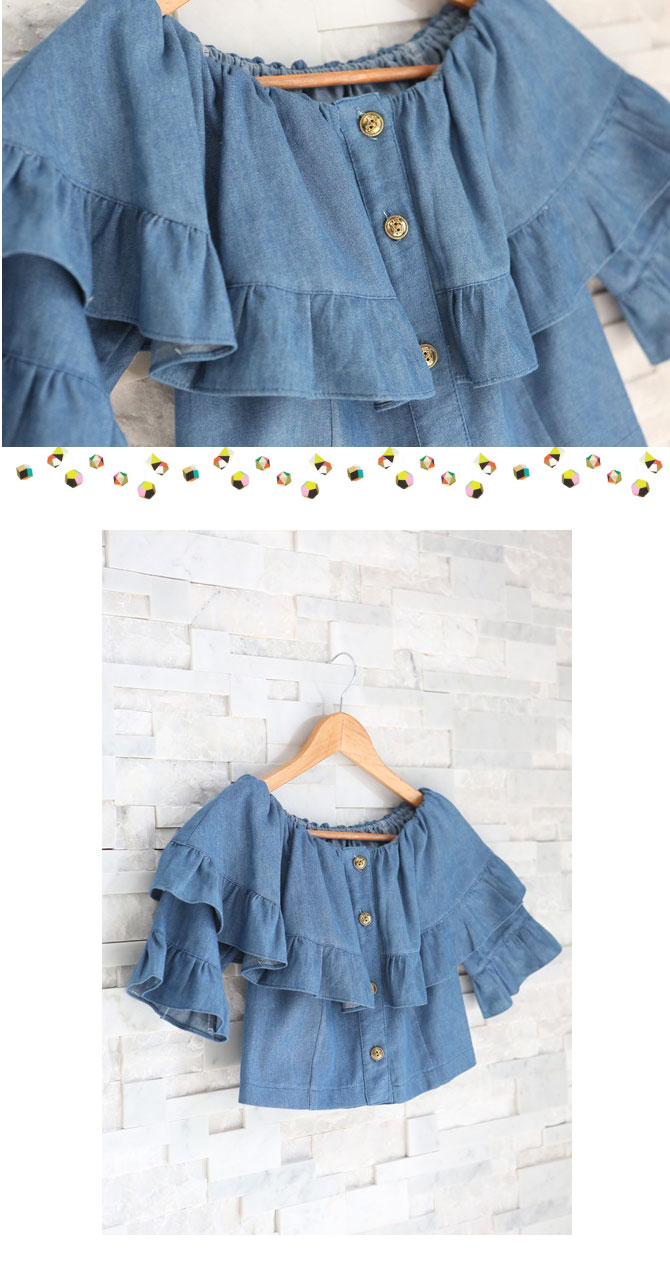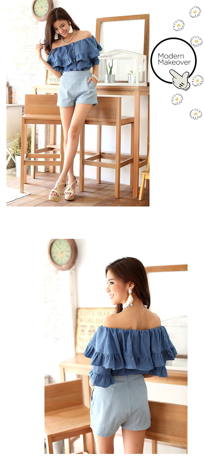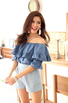 เสื้อยีนส์เนื้อนิ่ม ดีไซน์เซ็กซี่ได้ใจ ชนะเลิศ ตัวนี้น่าร๊ากกกมากๆ ค่ะ ใช้ผ้ายีนส์เนื้อนิ่มตัดเป็นทรงคร็อป กระดุมหน้าใส่สบาย เพิ่มระบายมีวอลลุ่มช่วงอก ใส่เปิดไหล่แล้วน่ารักมากๆ เลยนะคะ หรือจะยกไหล่ขึ้นไปก็ดูหวานๆ วินเทจได้อีกลุกส์ค่ะ แมทช์คู่รายการ ST456 รับรองเริ่ดค่ะ