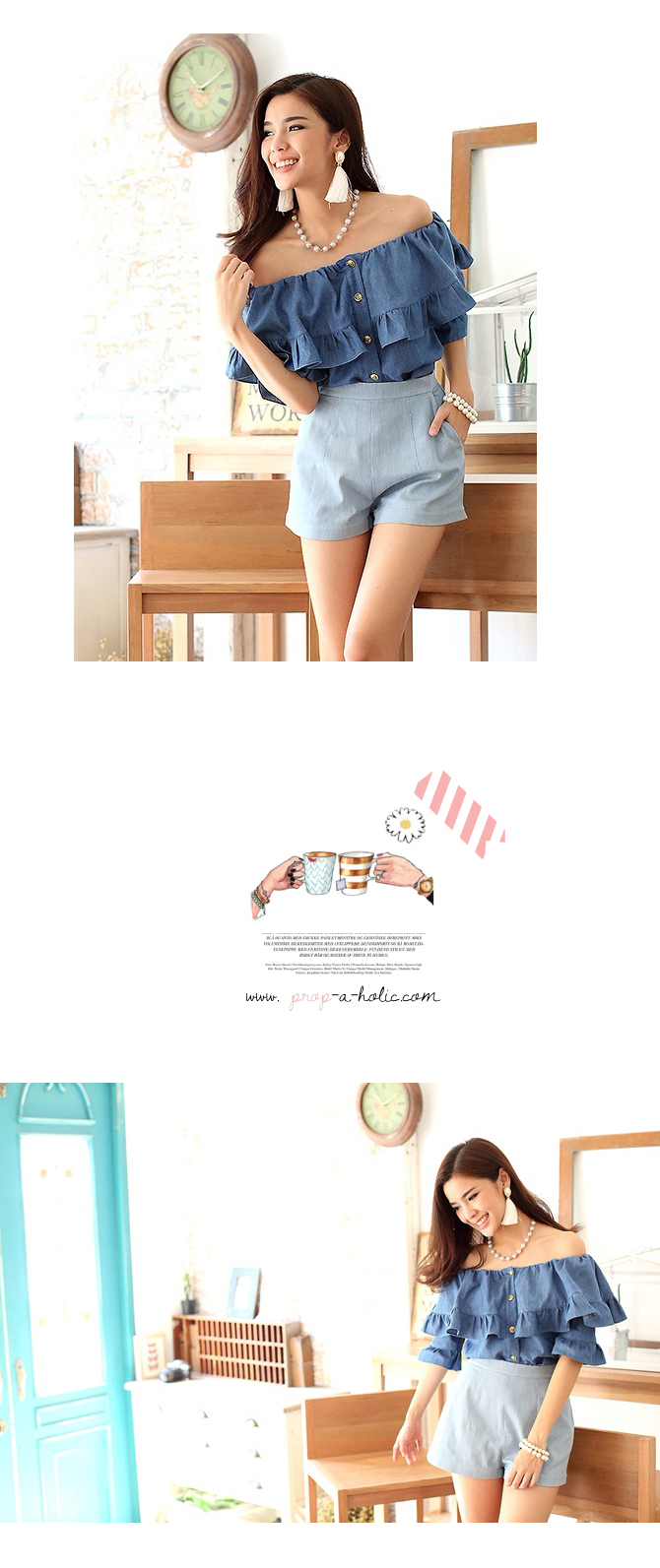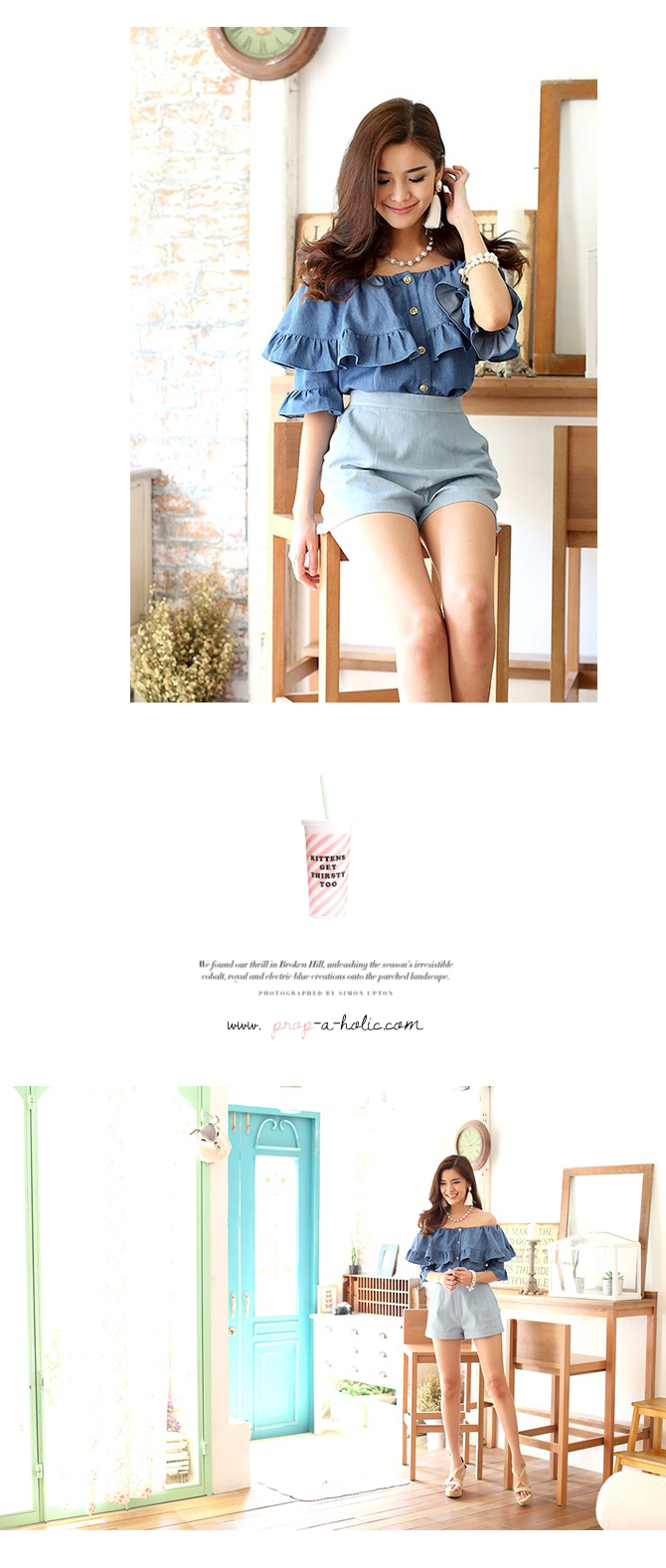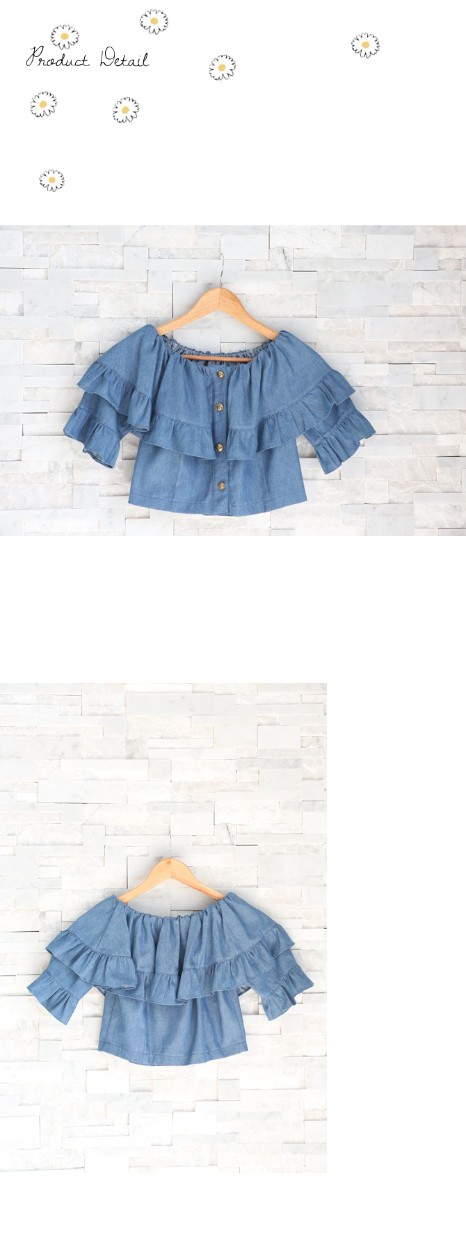 เสื้อยีนส์เนื้อนิ่ม ดีไซน์เซ็กซี่ได้ใจ ชนะเลิศ ตัวนี้น่าร๊ากกกมากๆ ค่ะ ใช้ผ้ายีนส์เนื้อนิ่มตัดเป็นทรงคร็อป กระดุมหน้าใส่สบาย เพิ่มระบายมีวอลลุ่มช่วงอก ใส่เปิดไหล่แล้วน่ารักมากๆ เลยนะคะ หรือจะยกไหล่ขึ้นไปก็ดูหวานๆ วินเทจได้อีกลุกส์ค่ะ แมทช์คู่รายการ ST456 รับรองเริ่ดค่ะ