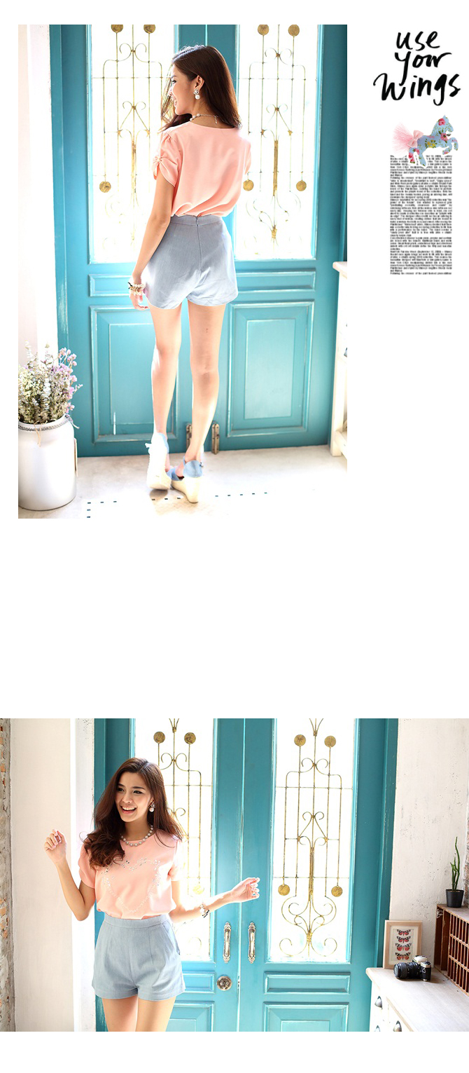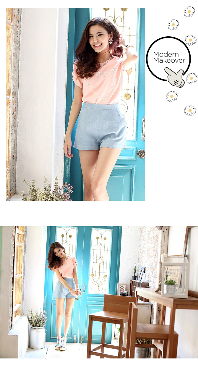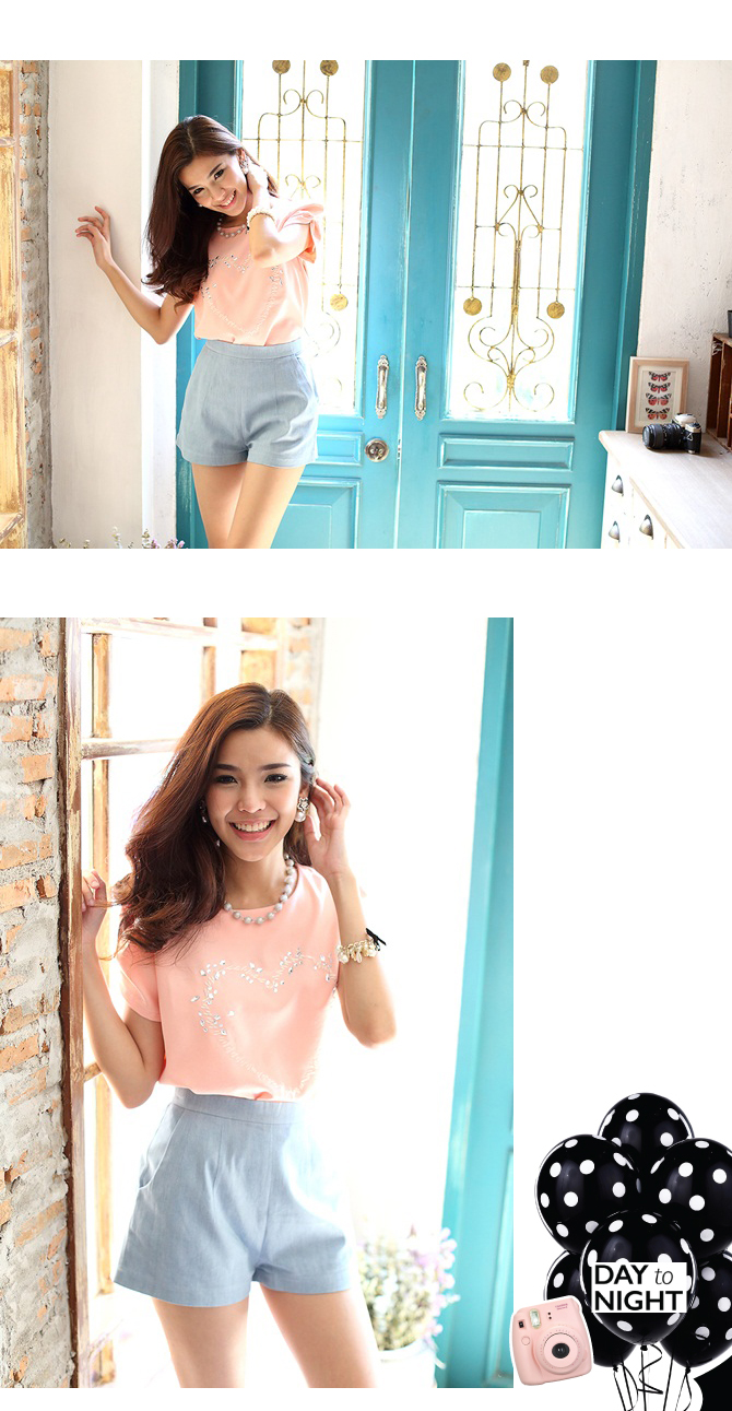 เสื้อสีหวาน เนื้อผ้าลื่น เย็นเบาสบาย ร้อนๆ แบบนี้เหมาะมากแบบไม่ต้องคิดเยอะค่ะ นอกจากสีจะหวานแล้ว ดีเทลยังน่ารักไม่แพ้กัน ด้วยคริสตัล ที่ช่วงอก ใส่แล้วดูมีอะไรๆ ช่วงแขนจับจีบยก ใส่แล้วแขนเรียวงาม แมทช์กับท่อนล่างรายการ ST456 แล้วคุณหนูสุดๆ ไปเลยจ้า