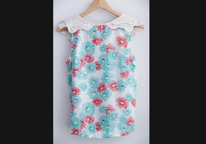 เสื้อกล้ามผ้าเย็นสบาย ลายดอกหวานใส มาพร้อมปกลูกไม้ทอ น่ารักน่าเอ็นดูมากๆๆค่ะ