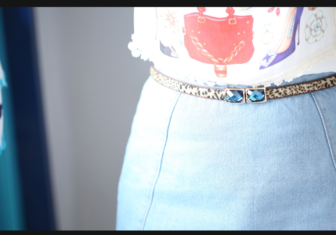 เข็มขัดลายเสือหัวคริสตัลน้ำเงินสวยเก๋ค่ะ