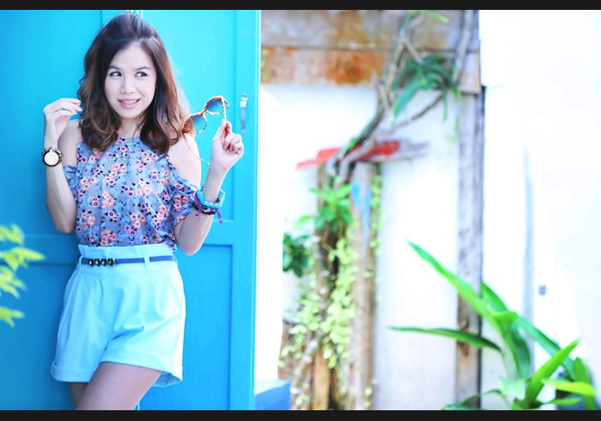 ST194-Blue La Rami Smarty high waist shorts-blue