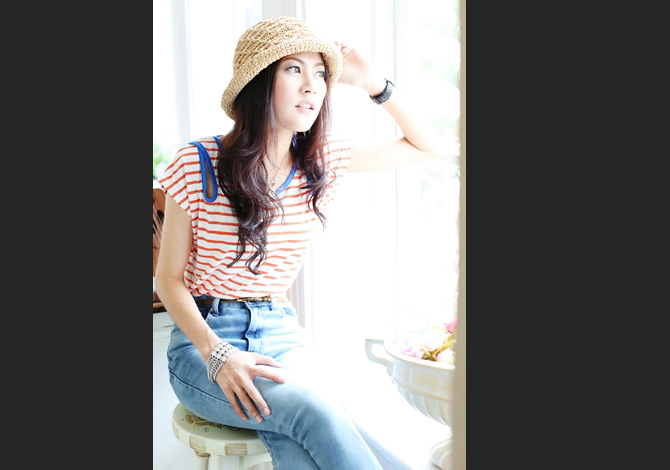 เสื้อยืดผ้านิ่มๆสบายตัว สีส้มลายทางตัดขอบด้วยกุ๊นสีน้ำเงินสดใส มีแหวกไหล่เบาๆๆ น่ารักมากๆๆค่า