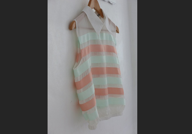 เสื้อเชิ๊ตแขนกุดจั้มเอวทรงสวย งานคุณภาพเกาหลี ตัวนี้ดีเทลเอาริ๊บบิ้นมาเย็บรอบตัวผ้าซีทรู เริ่ดค่า สีน่ารักมากๆๆ
