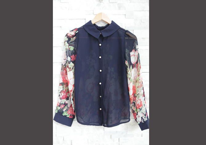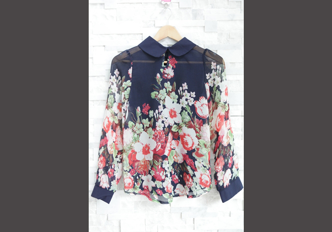 เสื้อชีฟองแขนยาวปกบัว งานสวย วางผ้าชายดอกไม้ กระดุมหลัง สวยมากจริงๆค่าตัวนี้
