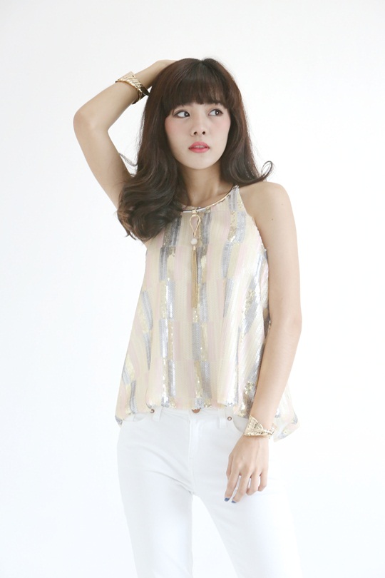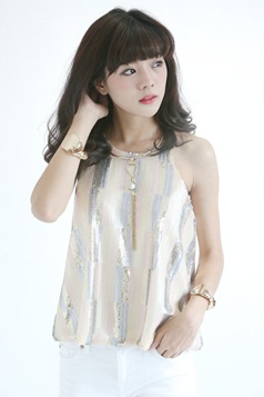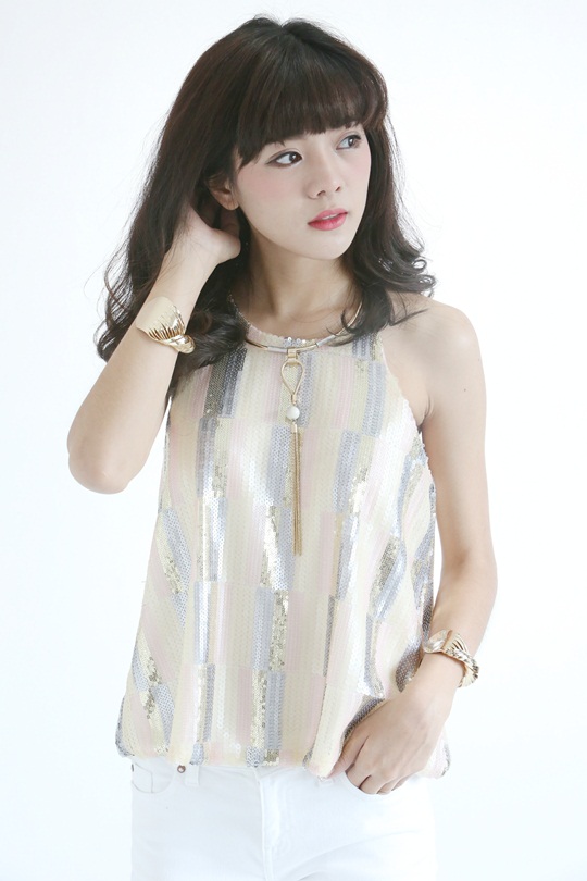 เสื้อกล้ามเลื่อมสีสวยน่ารักมากๆ ดีเทลช่วงคอเป็นสีทองดูดีมากๆค่า