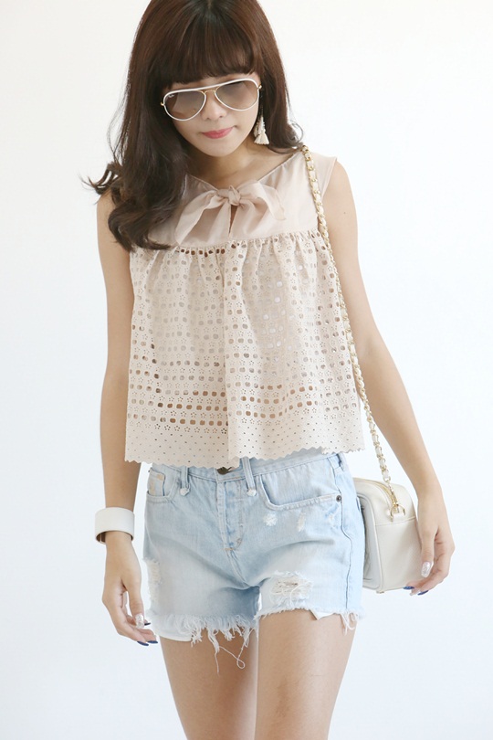 เสื้อกล้ามลูกไม้ฉลุ สี+ลายลุกไม้น่ารักมากๆค่า ดีเทลโบว์ใสๆน่าร้ากก