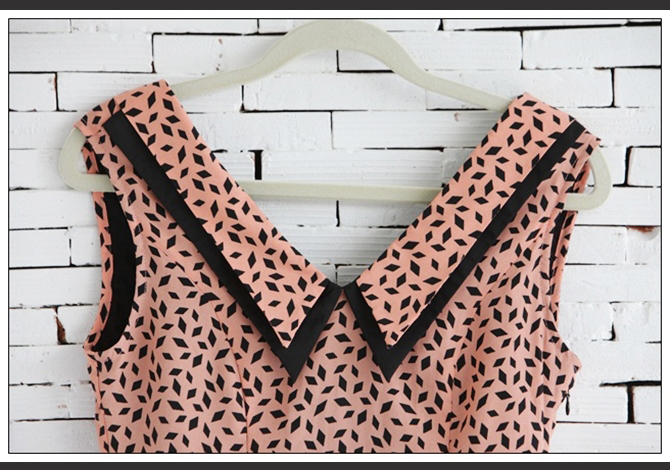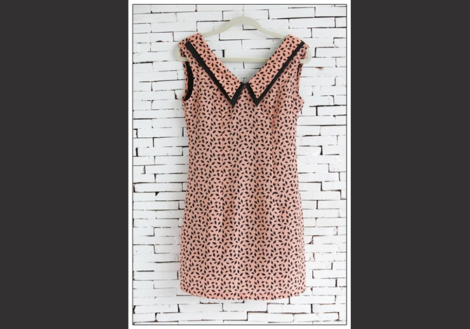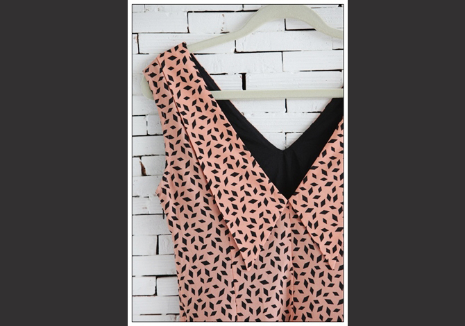 Detail เดรสวินเทจลายกราฟฟิกจากรมิงับ ตัวนี้ทรบสวยเชียว ใส่แล้วมีทรวดทรง ด้านหน้ามีปกซ้อน งานซิปข้างอยากย้ายหน้าหลังสลับไปงับๆๆ