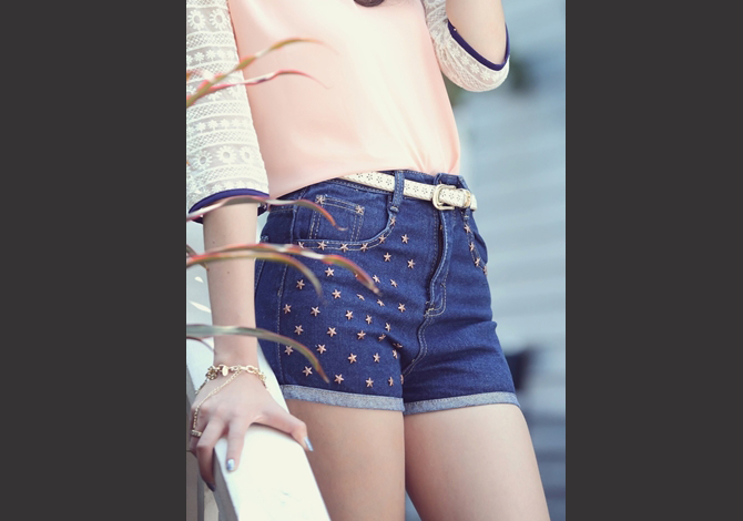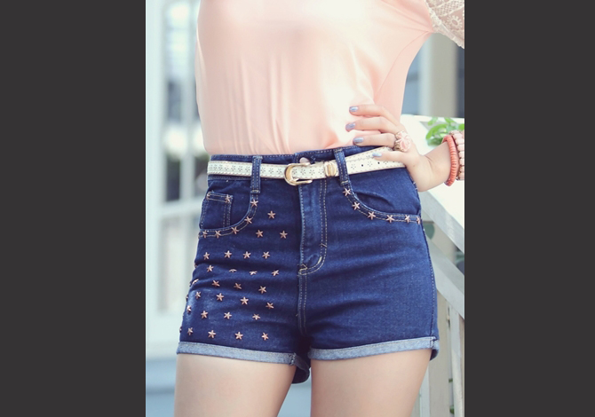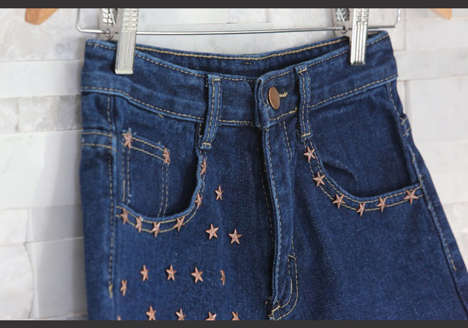 กางเกงยีนส์สีสวยประดับโลหะดาว สวยน่ารักมากๆค่ะ หมายเหตุ:น้องหยกใส่ขนาด 27 / ฟาใส่ขนาด 26 ค่ะ
