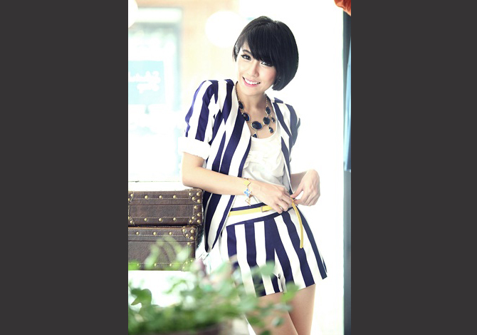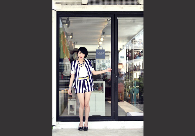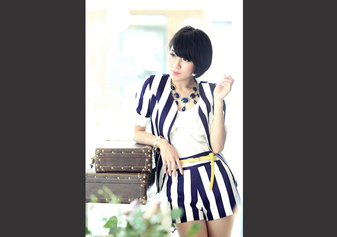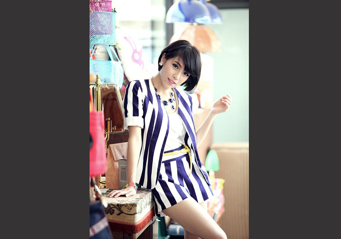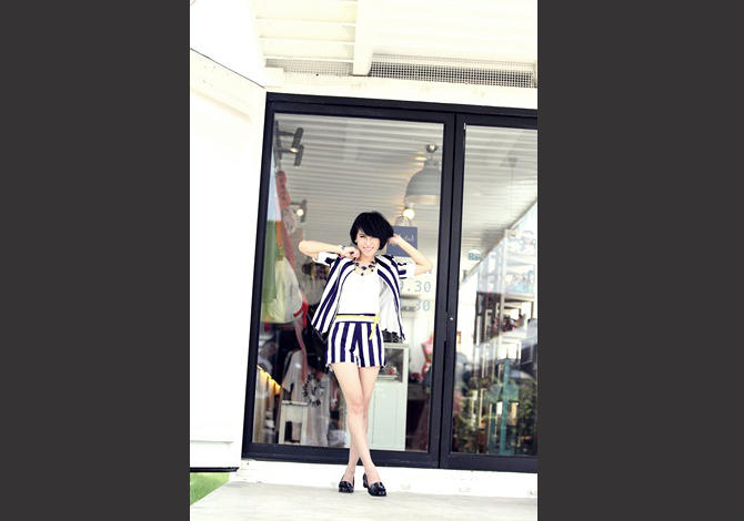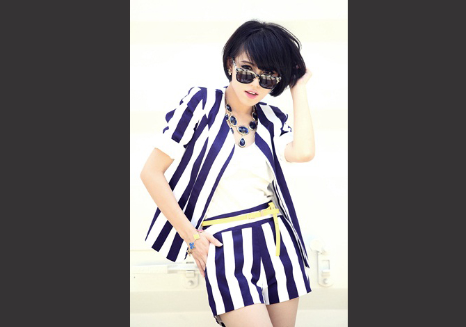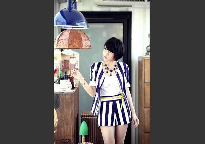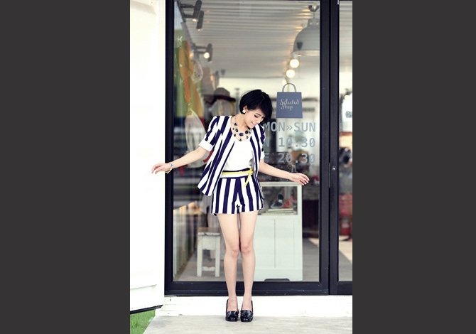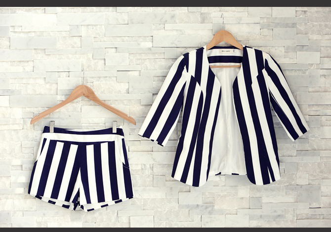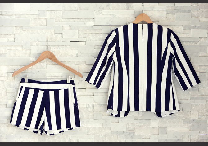 เซ็ตเบรเซอร์มาพร้อมขาสั้นลายทางสวยมาก ขอบอกเลยค่าว่าคุ้มสุดๆ ทรงก้อสวย เอามาแยกใส่กับอย่างอื่นเวิร์คมากๆค่ะ