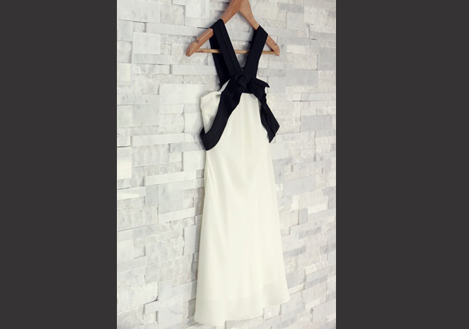 เดรสทรงสวยเก๋ โทนสีขาวดำกำลังอินเทรนด์นะคะ ดีเทลที่ช่วงสายคาดด้านหน้าและหลังเซะซี่เบาๆค่ะ งานดีมีซับนะจ๊ะ น้องกุ๊กกิ๊ก และ พี่ฟาใส่ SS นะคะ