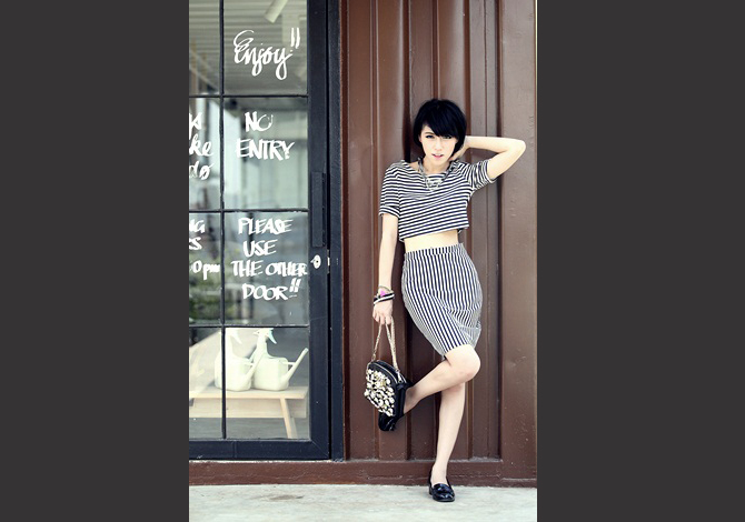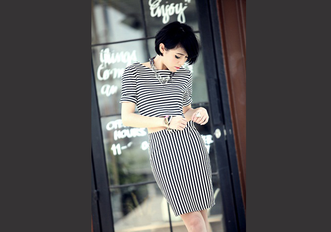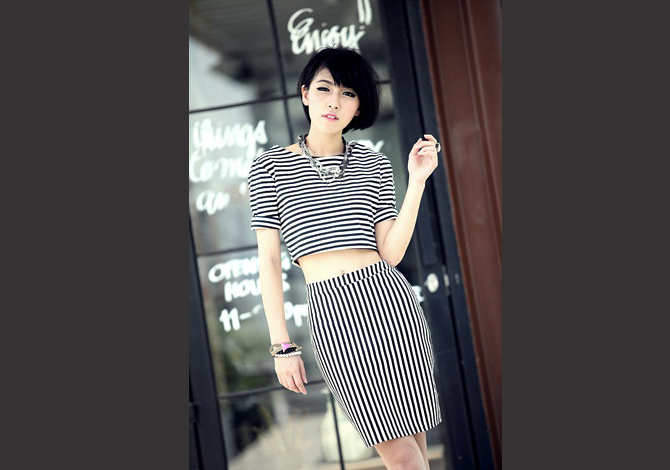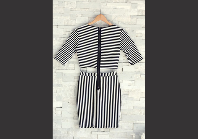 - เดรส เว้าเอวทรงสวย เน้นใส่ตัดกันของผ้าลายทาง มีซิปหลังต่อสวยเซะซี่ ดูดีมากๆค่ะ