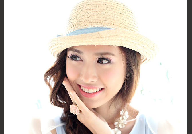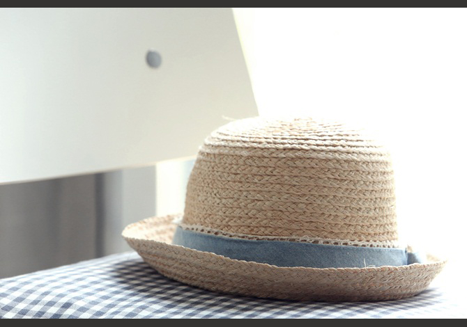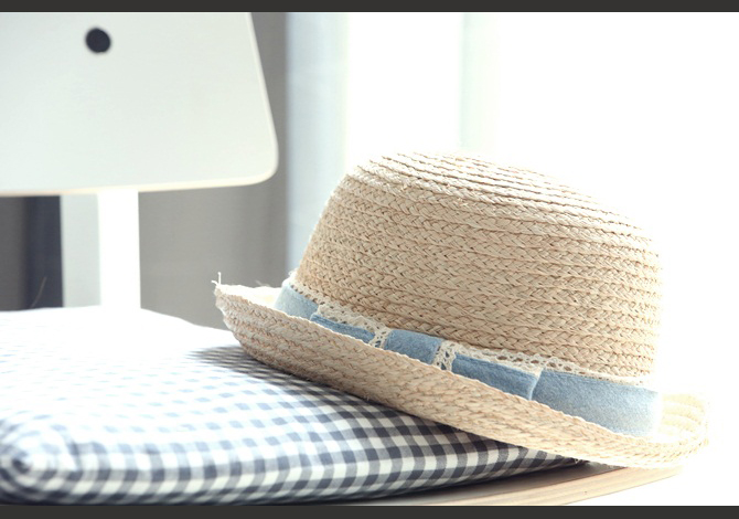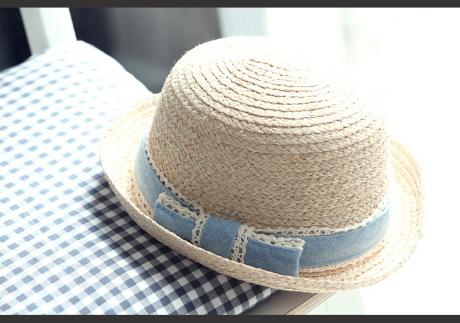 หมวกสานประดับโบว์สีฟ้าน่ารักมากๆค่ะ เริ่ดสุดในหน้าร้อนนนนนนี้