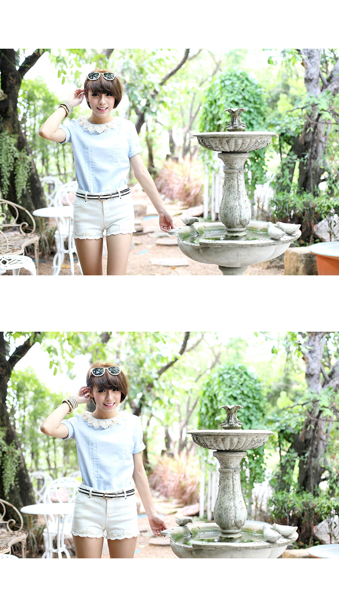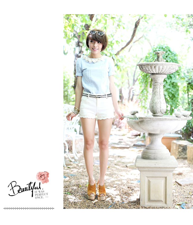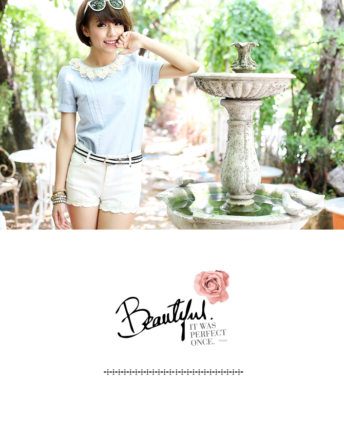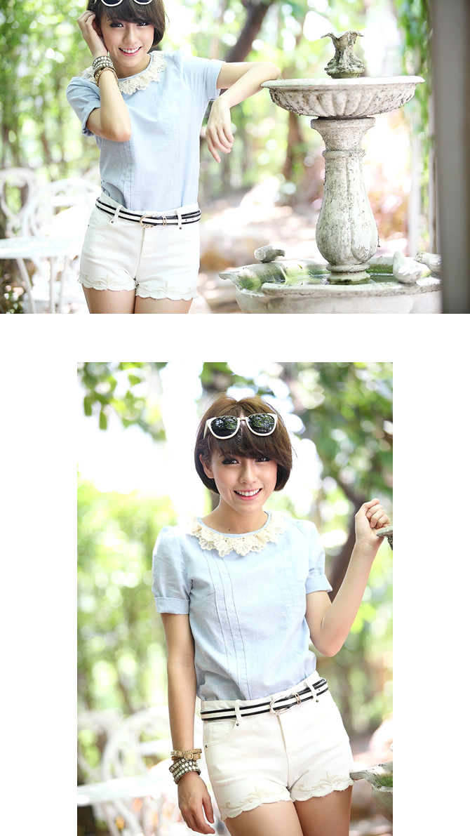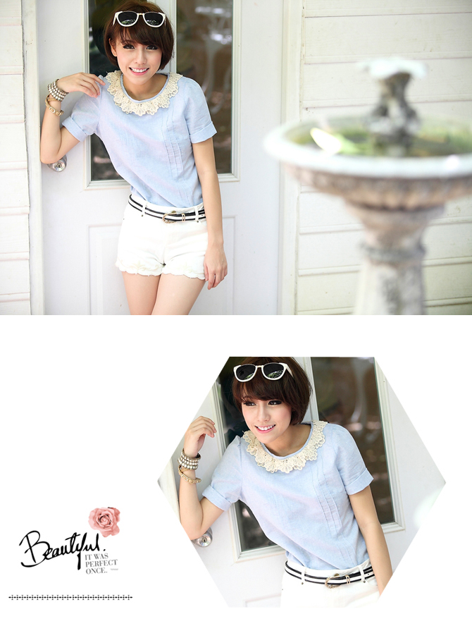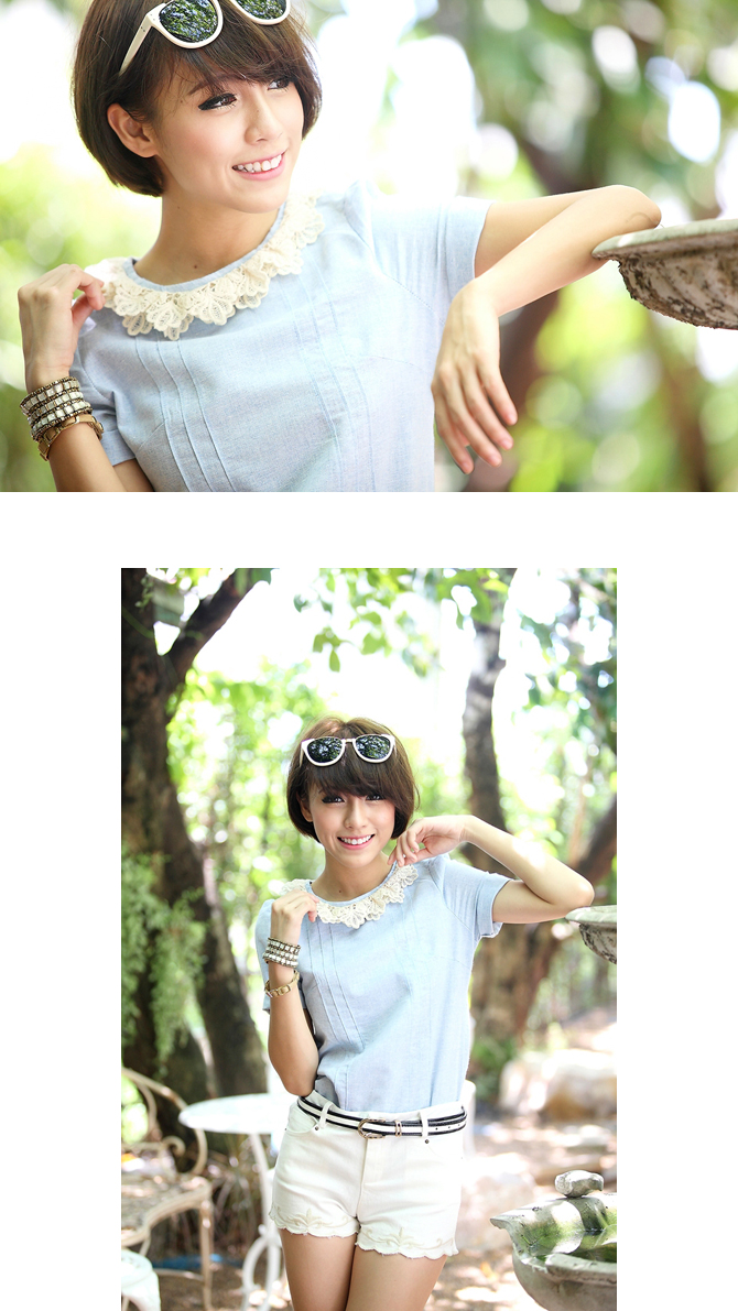 เสื้อยีนส์เนื้อบางเบาประดับคอลูกไม้สวยเก๋ดูดีมากๆค่ะ แมทง่ายใส่ได้หลากหลายโอกาส จะเที่ยวเล่นทำงานได้ครบค่า