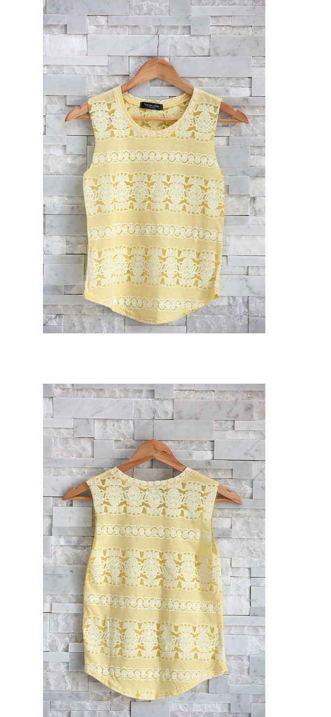 19-BL1052-Y Printed Lace Vest-yellow