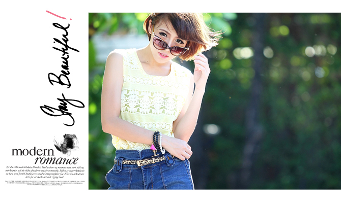 - เสื้อกล้ามเนื้อบางเบาสบาย ผ้าลายลูกไม้ซีทรูในตัว น่ารักสดใสเหมาะกับร้อนนี้มากค่ะ แนะนำให้แมทกับกางเกงสีขาวหรือยีนส์เจิ่ดมากๆค่ะ