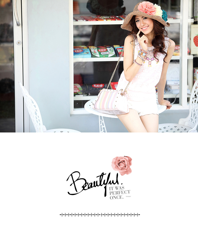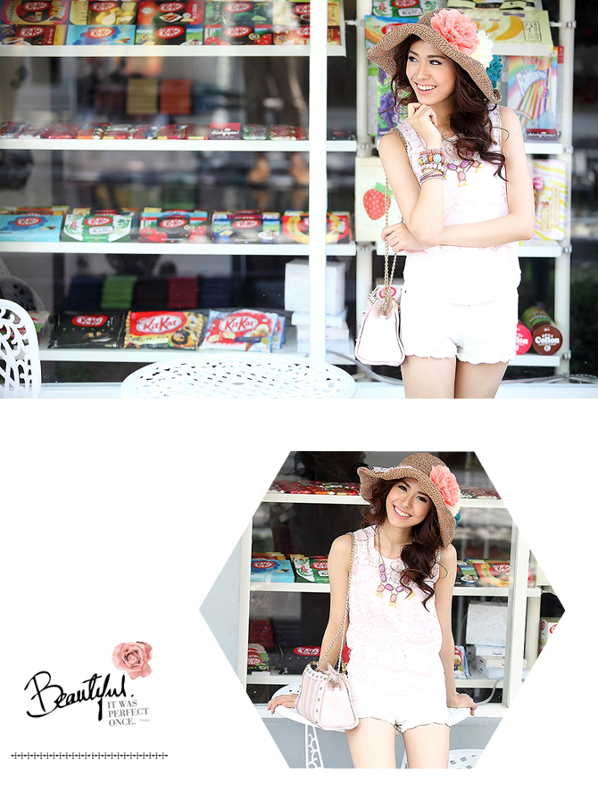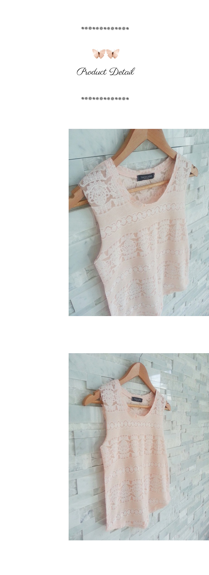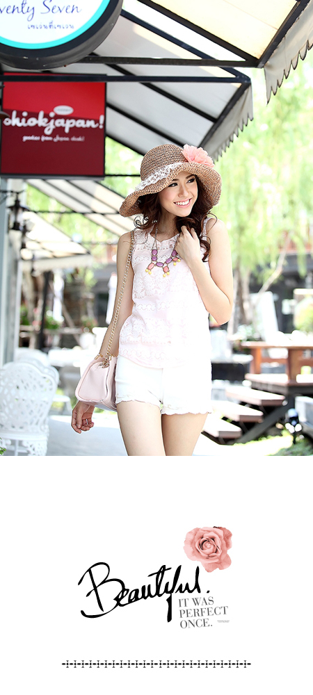- เสื้อกล้ามเนื้อบางเบาสบาย ผ้าลายลูกไม้ซีทรูในตัว น่ารักสดใสเหมาะกับร้อนนี้มากค่ะ แนะนำให้แมทกับกางเกงสีขาวหรือยีนส์เจิ่ดมากๆค่ะ