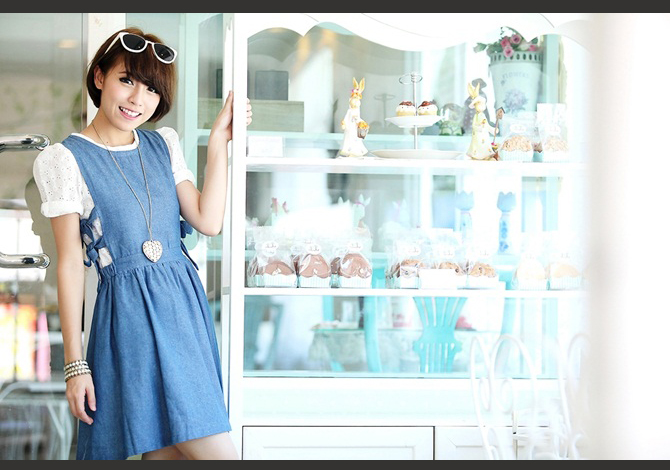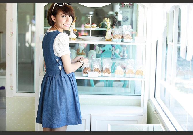 - ชุดหมีทรงคุณหนูที่กำลังอินที่สุดในช่วงนี้ ตัวนี้เพิ่มความน่ารักที่โบว์ข้าง สีกำลังสวยแมทได้หลากหลายแนว แนะนำลองใส่กับเสื้อลายขวางก้อน่ารักนะ อิอิ