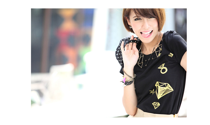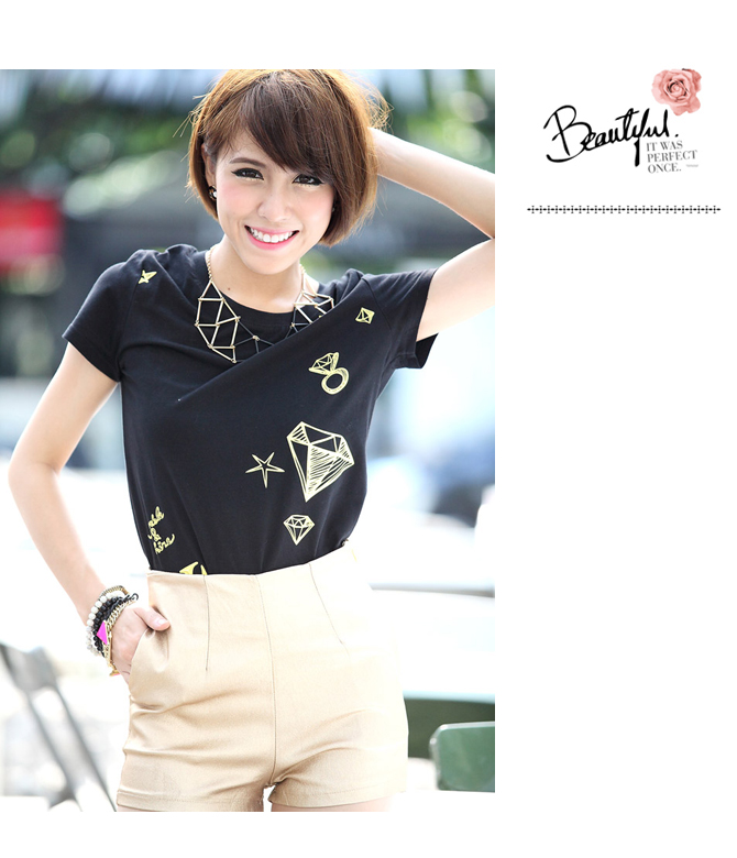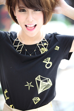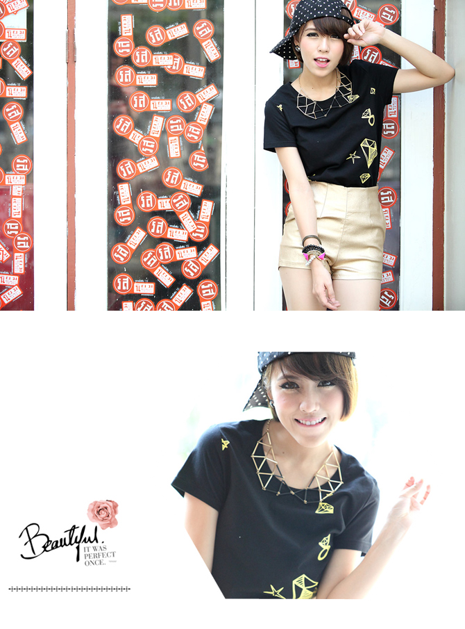 - เสื้อยืดเนื้อผ้านิ่มสบายจาก Discovery island ลายพิมพ์นู้นพิเศษเป็นรูปเพชรเก๋ไก๋ค่า