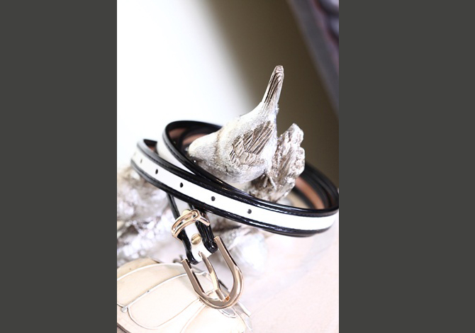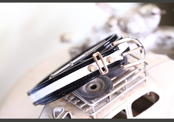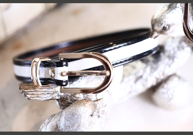 เข็มขัด PU ลายริ้วหนังแก้ว สวยเก๋จร้า