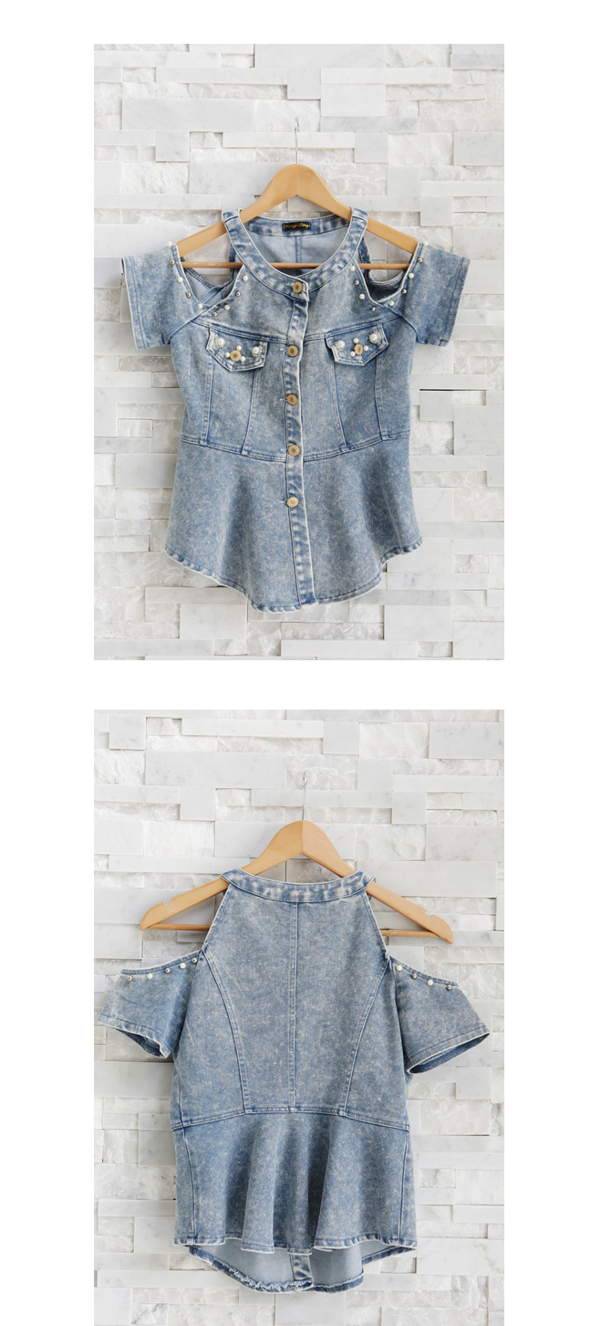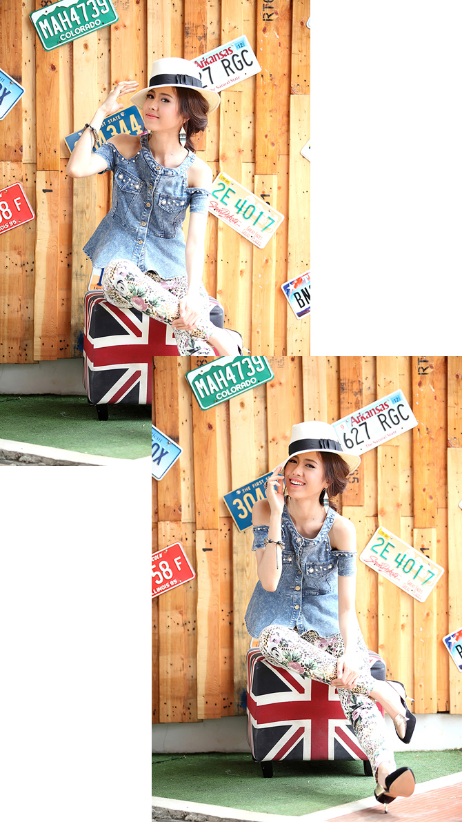 ฮอตสุดๆ กับ เสื้อยีนส์เว้าไหล่ประดับมุกวิบวับ ตัวนี้เก๋และเดิ้นมากนะคะ เปรี้ยวอมหวาน ไม่ควรพลาดเลยนะฮร๊าาา ขอโบกๆ