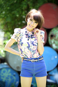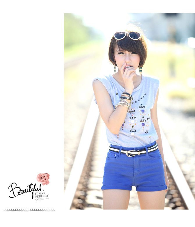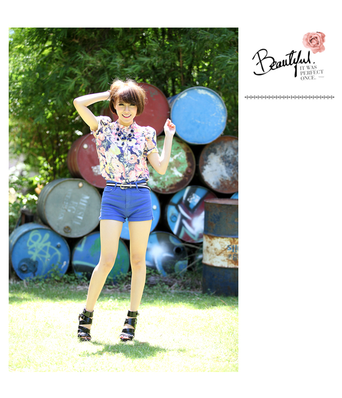 27-ST259-BL Classic high waist short-blue